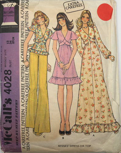 1974 Vintage Sewing Pattern: McCalls 4028