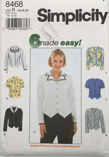 1990’s Vintage Sewing Pattern: Simplicity 8468