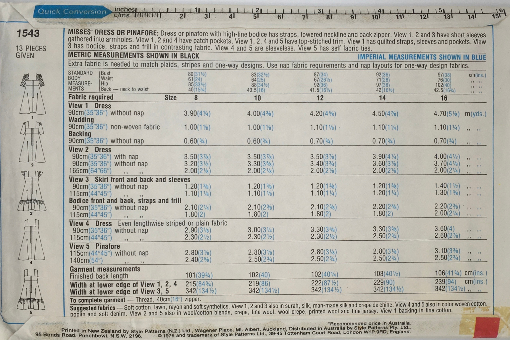 Misses' Dress or Pinafore: Features a high-line bodice, creating a classic and flattering silhouette. The neckline is lowered for a stylish touch, and a back zipper ensures easy wearing. The pattern provides options for short sleeves, which can be gathered into armholes for a soft and feminine look or quilted straps for added texture and detail. Alternatively, there is a capped sleeve option for a cute and playful appearance. The pattern also offers the choice of adding optional patch pockets, practical for keeping small essentials. For an extra touch of whimsy, a frill can be included in the same fabric as the garment or contrasting fabric, allowing for creative customisation. This sewing pattern is perfect for creating a charming and comfortable dress or pinafore that can be styled in various ways, making it a versatile addition to any wardrobe.
