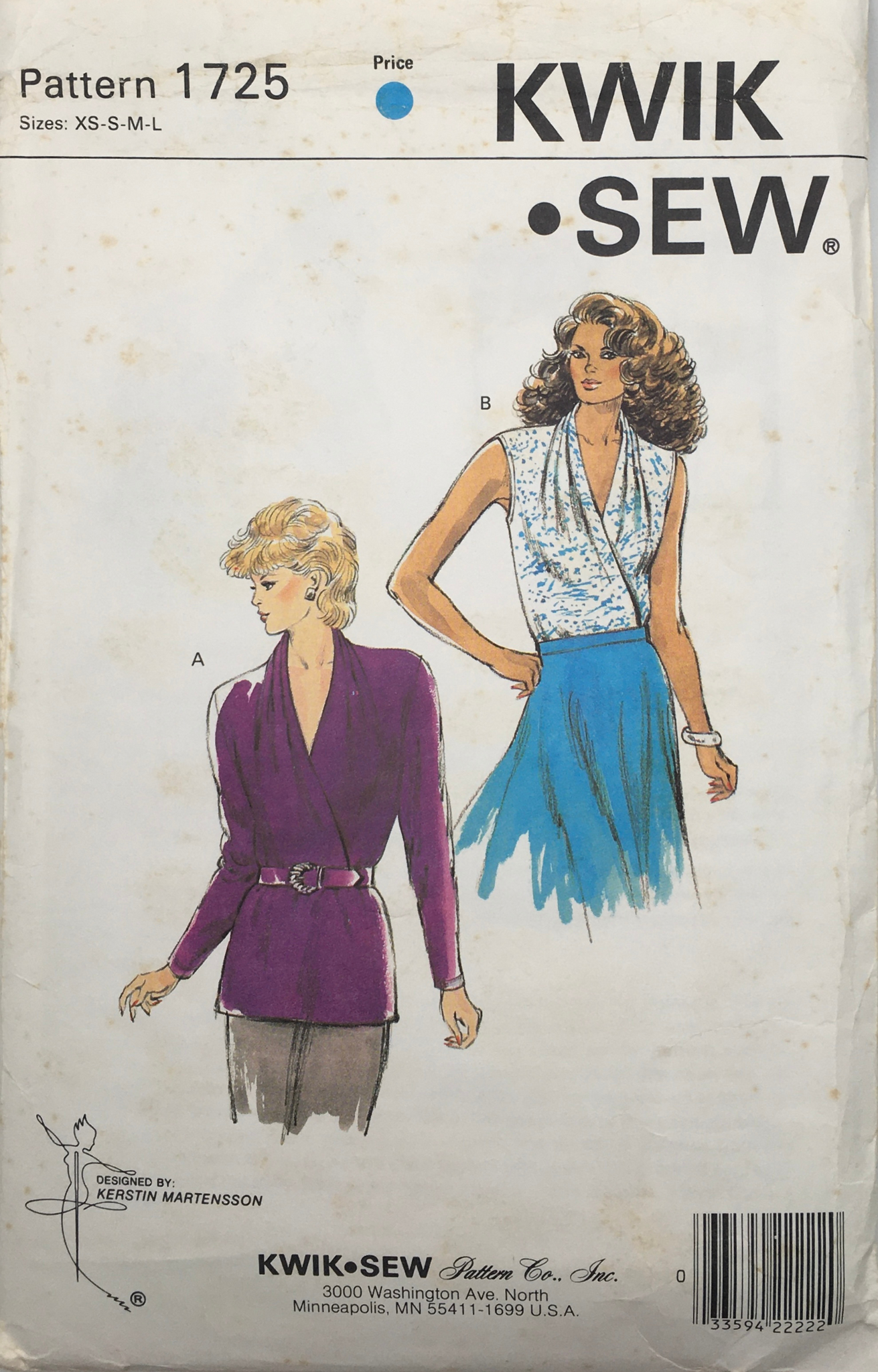 Misses’ Tops: Semi-fitted tops have draped, overlap front with tucks at centre back neckline. Top has waist seam with stitched elastic. View A has long sleeves. View B is sleeveless and is finished with facings.