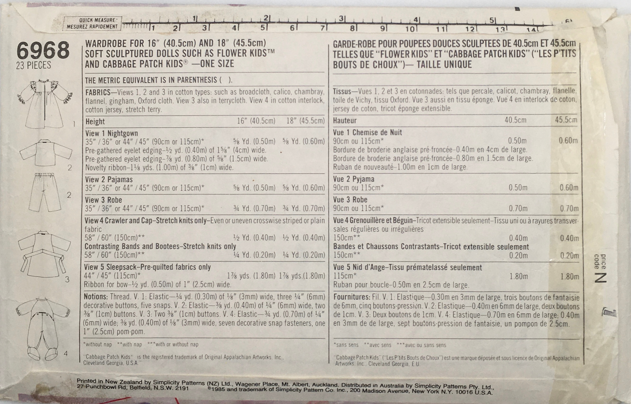 Dolls Clothes: Wardrobe for 16” (40.5cm) and 18” (45.5cm) Soft Sculptured Dolls Such as Flower Kids and Cabbage Patch Kids.