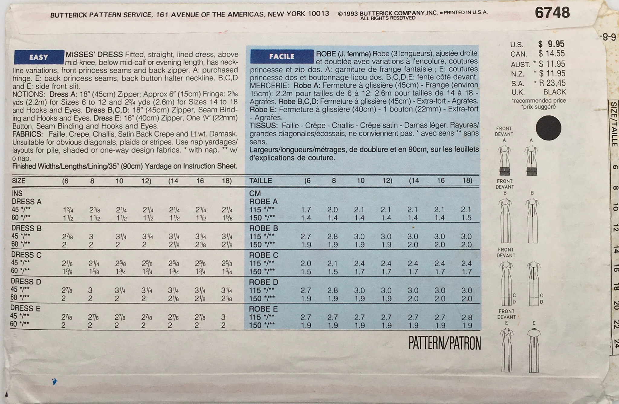 Suggested Fabrics: Faille, Crepe, Challis, Satin back Crepe, Lightweight Damask.