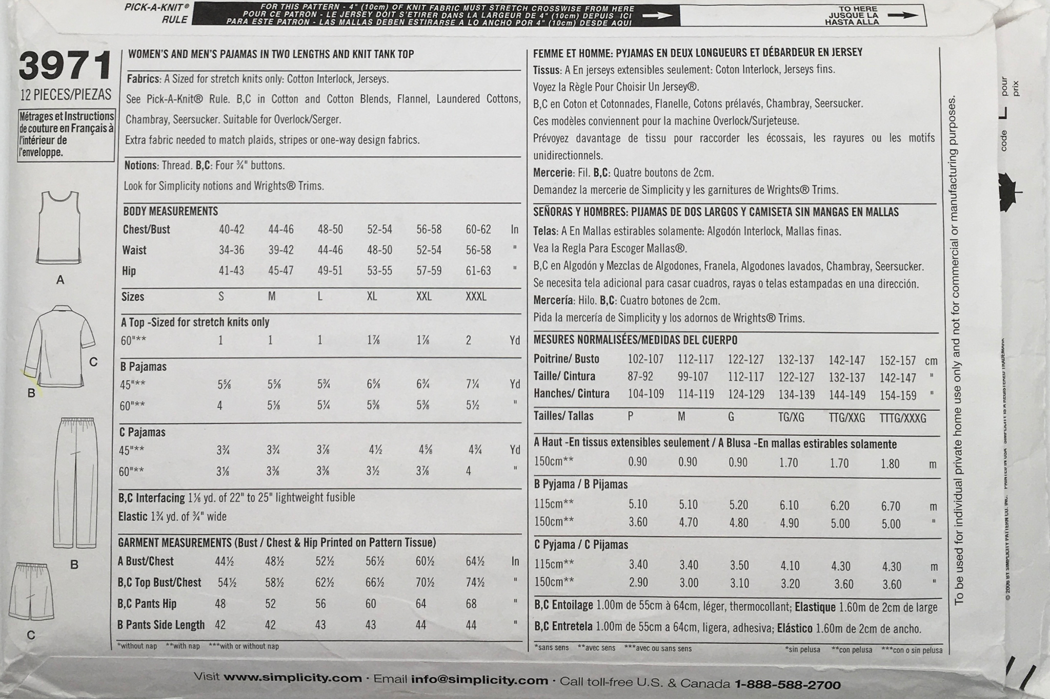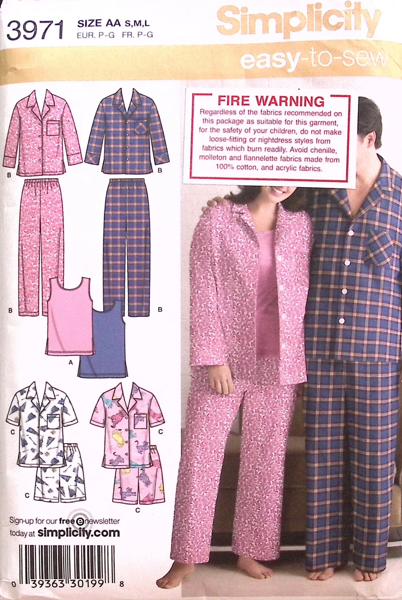 Misses' & Mens Pyjamas & Knit Tank Top: Sew comfortable pajamas effortlessly with this easy pattern designed for both Men and Misses. The set includes two sizes, offering options for long and short sleeves, pants, shorts, and a knit tank top. Perfect for beginners, this pattern provides a simple and enjoyable sewing experience.