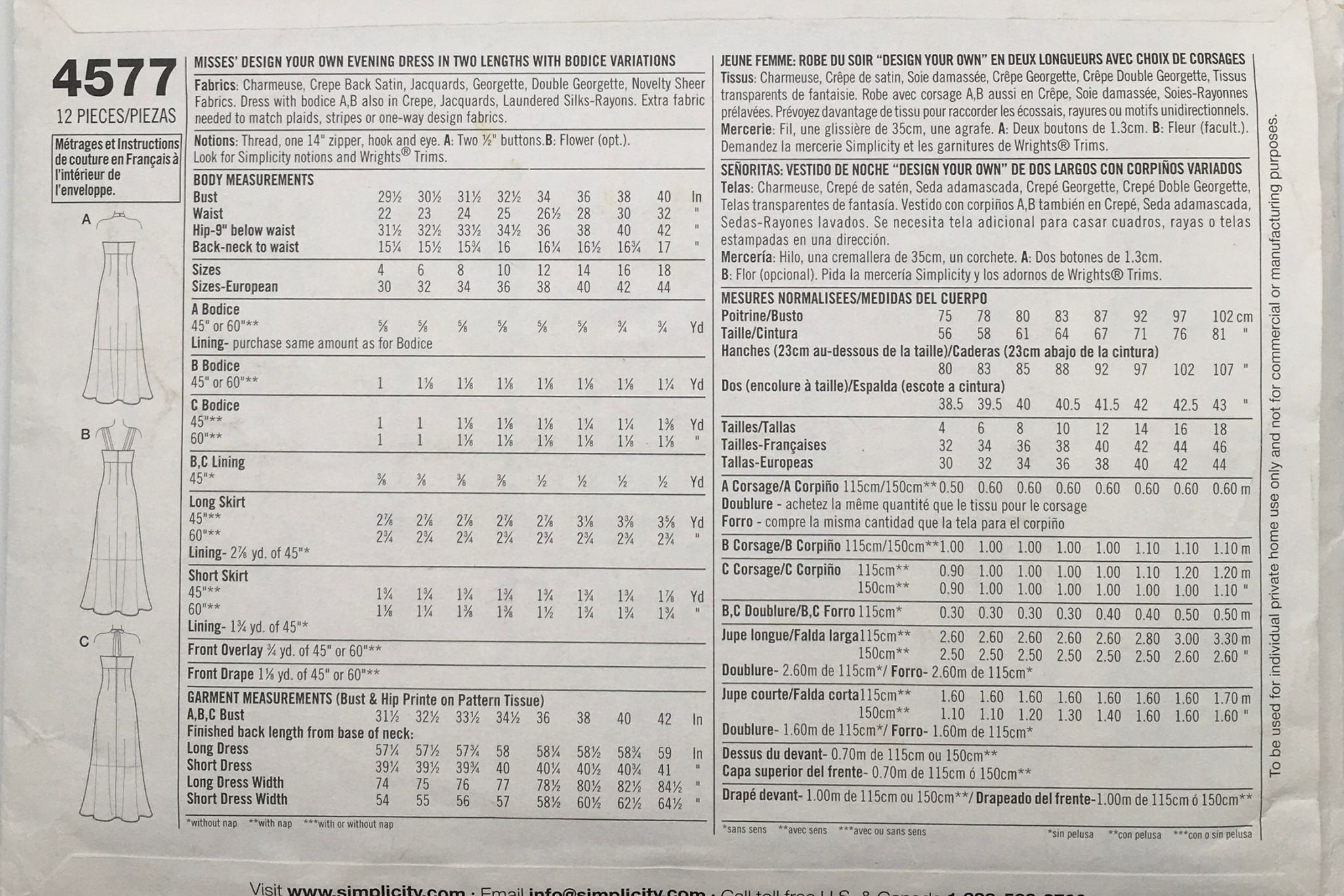 Suggested Fabrics: Charmeuse, Crepe back Satin, Jacquards, Georgette.