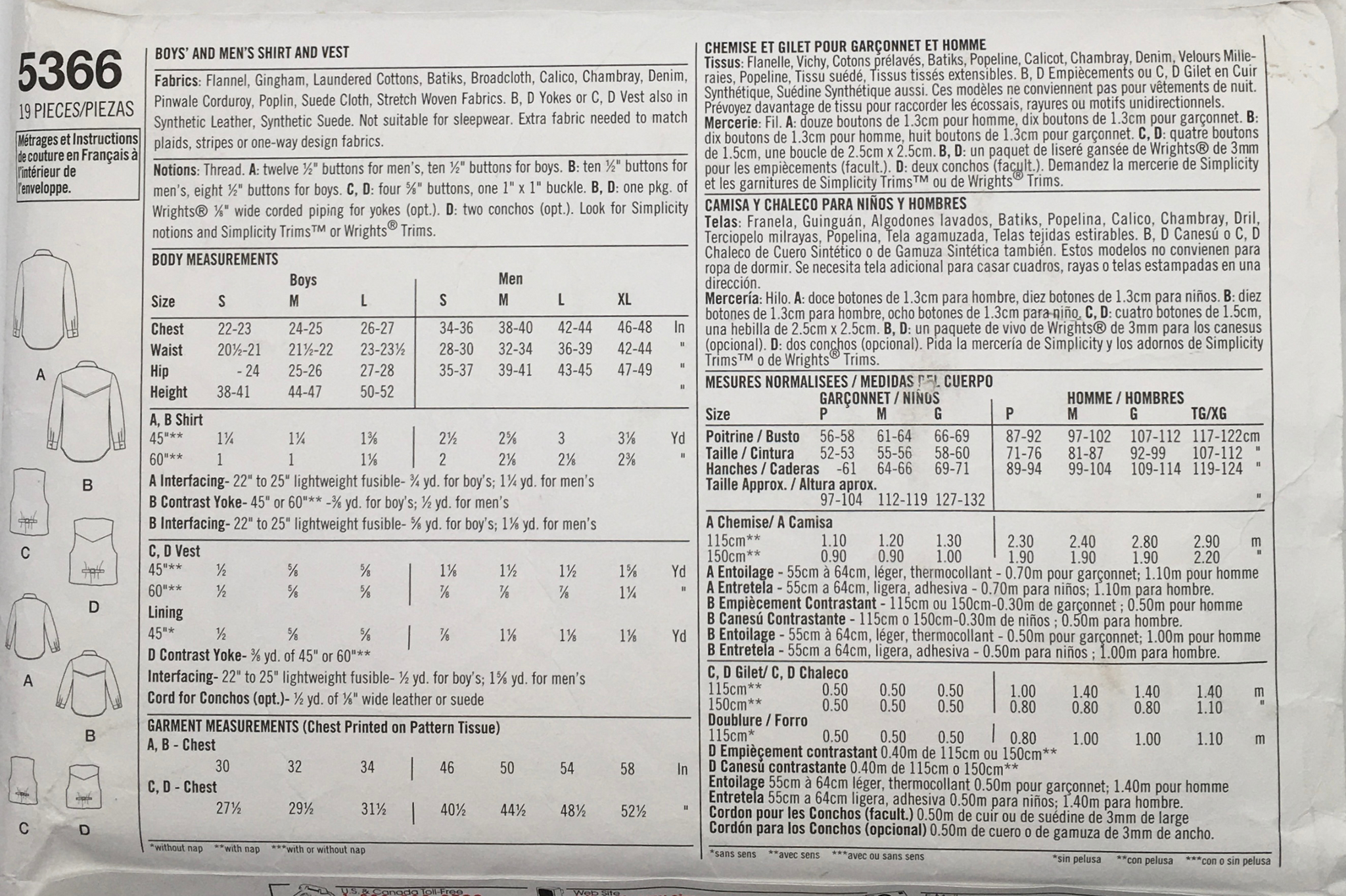 Suggested Fabrics: Flannel, Gingham, Laundered Cotton, Batiks, Broadcloth, Calico, Chambray, Denim, Pinwale Corduroy, Poplin, Suede Cloth, Stretch Woven Fabrics.