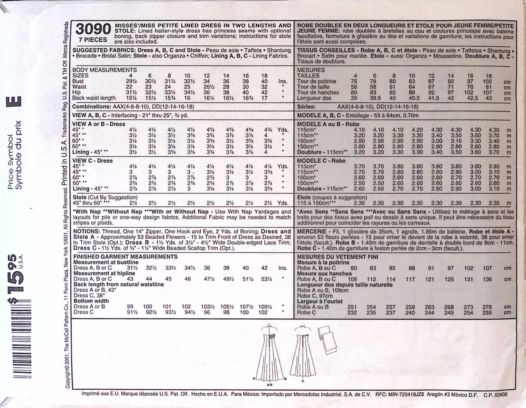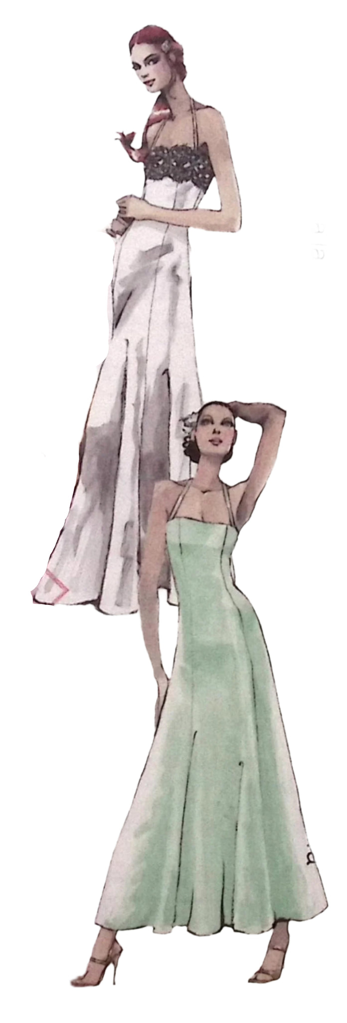 Evening Elegance: Misses’ Lined Dress in Two Lengths and Stole: Lined halter-style dress has princess seams with optional boning, back zipper closure and trim variations. Instructions for stole are also included. ©2001.