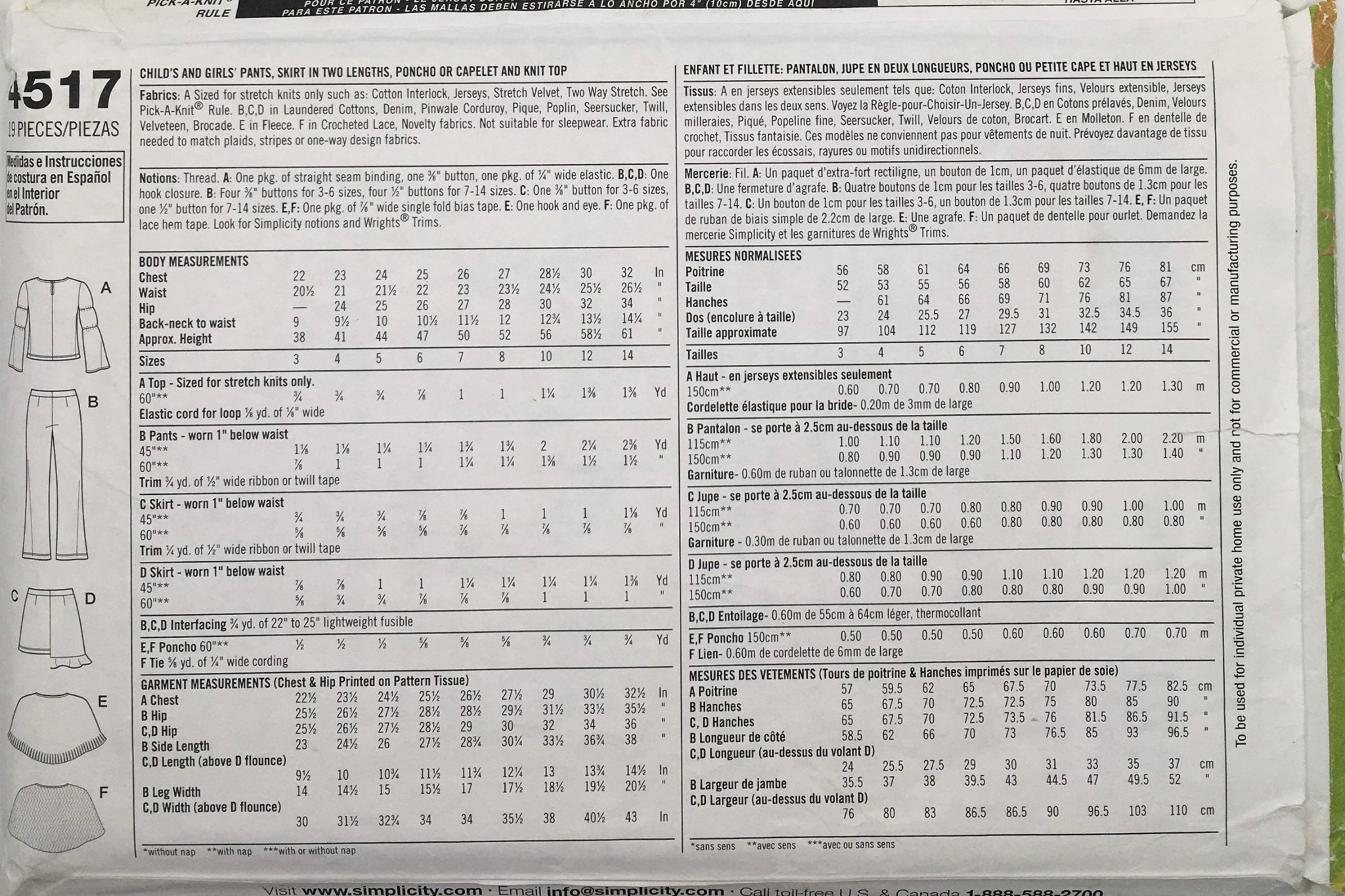 Girls’ Pants, Skirt in Two Lengths, Poncho or Caplet and Knit Top: Lizzie McGuire Collection:
