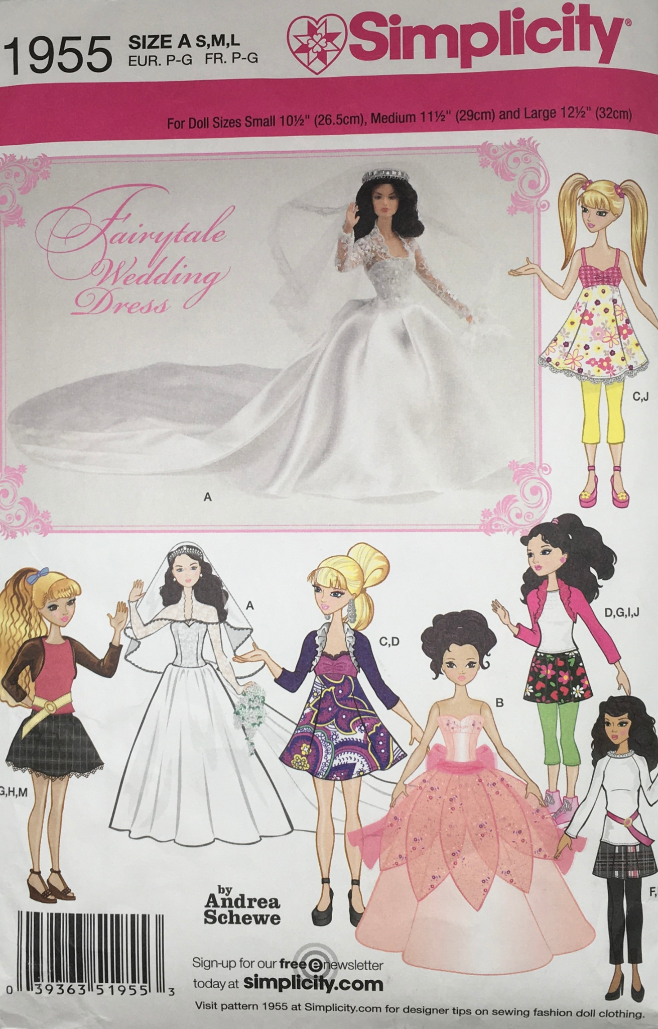 Designed by Andrea Schewe: Fairytale Wedding Dress, Special Occasion and Sportswear Doll Clothes in Three Sizes: S (10-1/2"), M (11-1/2"), and L (12-1/2").
