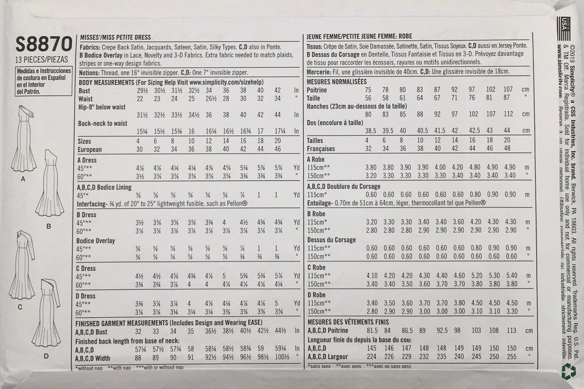 Suggested Fabrics: Crepe back Satin, Jacquards, Sateen, Silky Types.