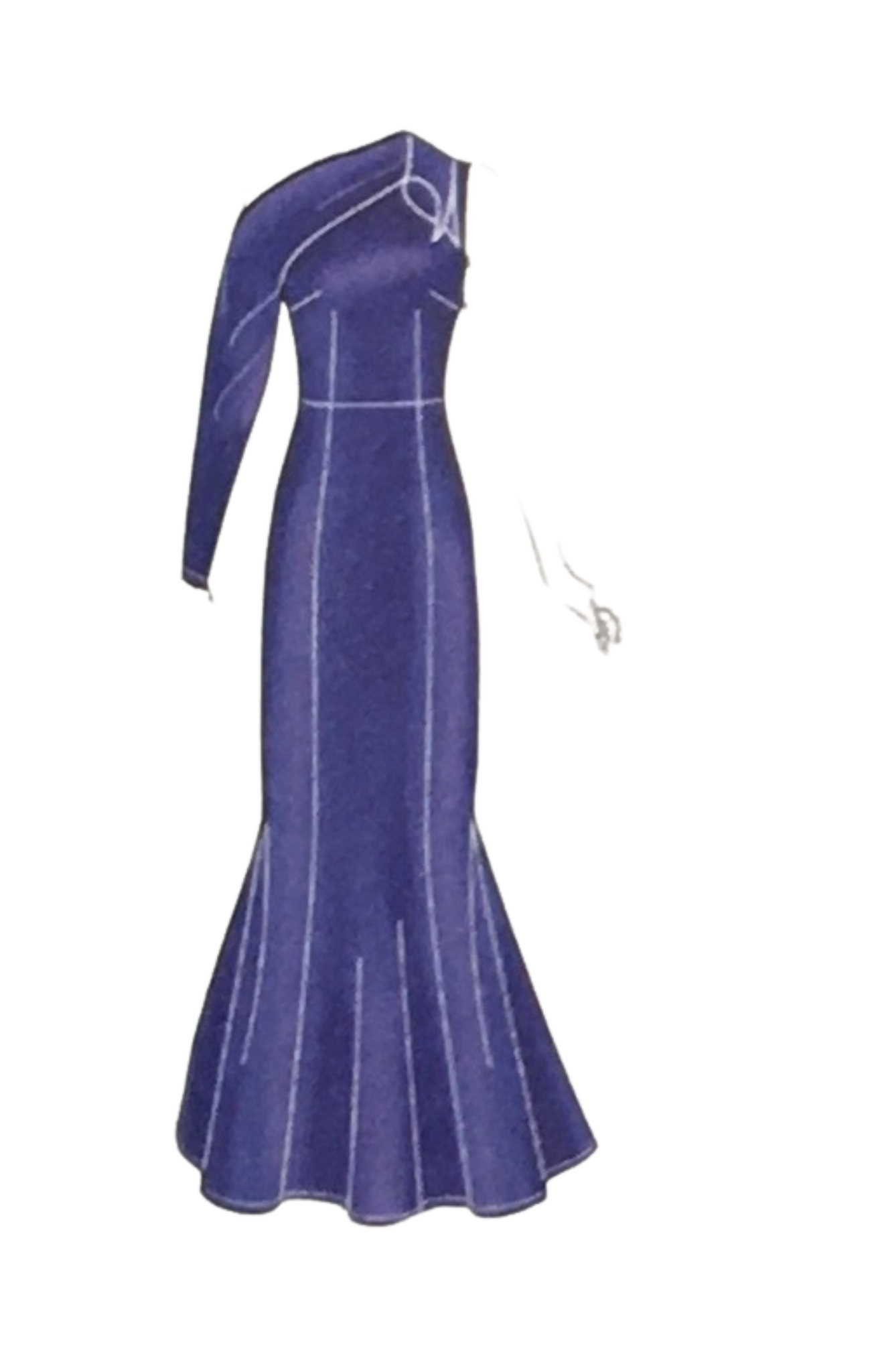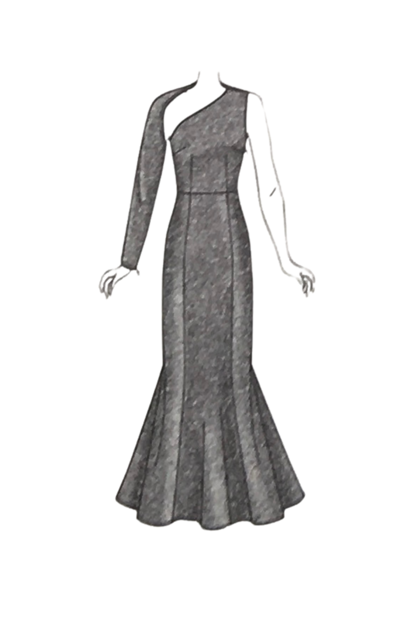 Misses' Dress: Full-length dresses. Fitted at bust, waist and hips. One shoulder style with/without drape collar or single sleeve and neckline variations. Skirt is panelled, lightly flared from below the knee.