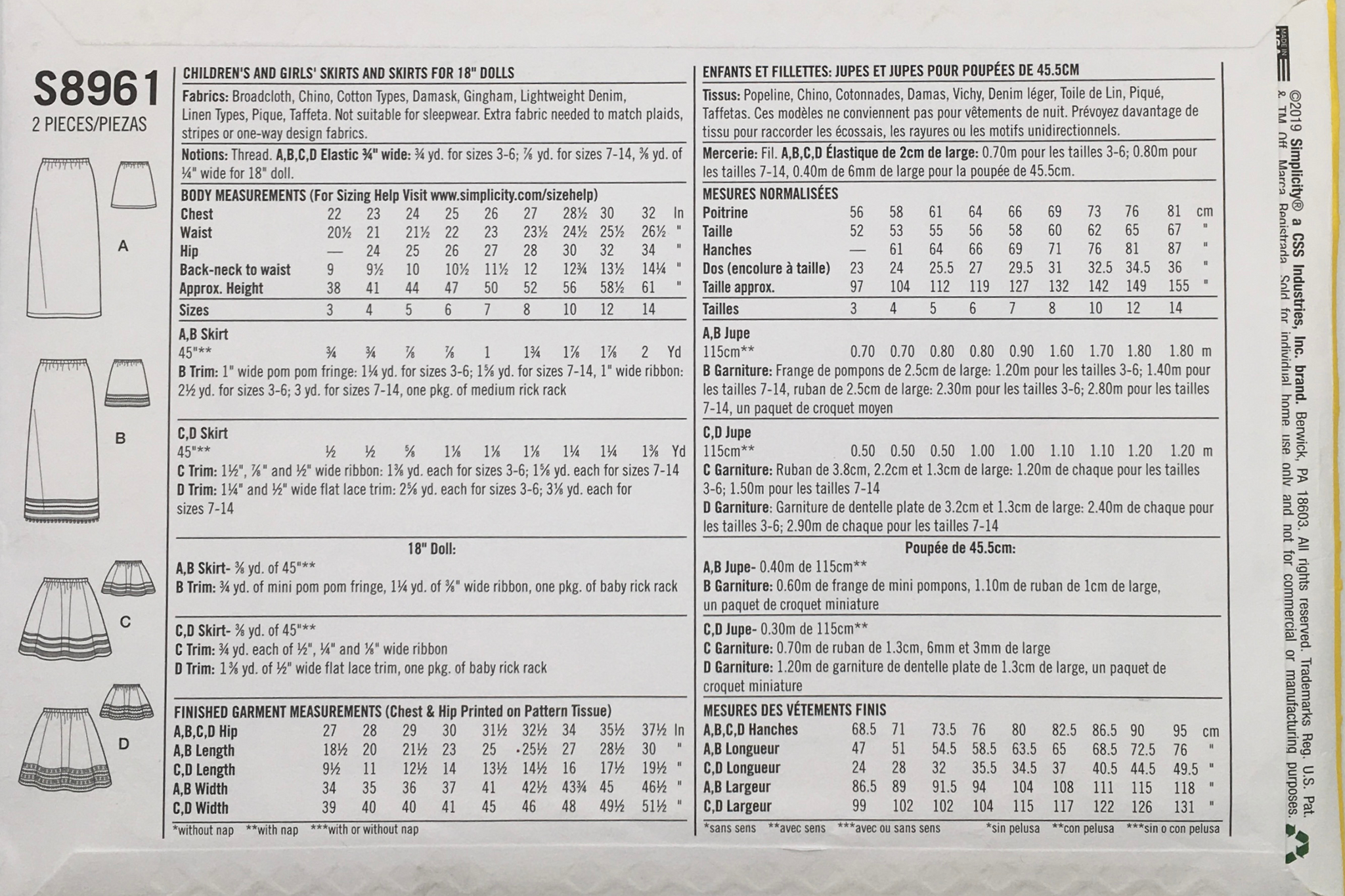 "Learn To Sew" Children's and Girls" Skirts and Skirt for 18" Doll: This pattern is another fun one for girls. Make beautiful matching skirts for their dolls too. The pattern features three skirt pattern with length variations. The skirts for the dolls are for 18 inches size. Learn to Pick your Pattern Size, Make an Elastic Casing and Apply Trim.