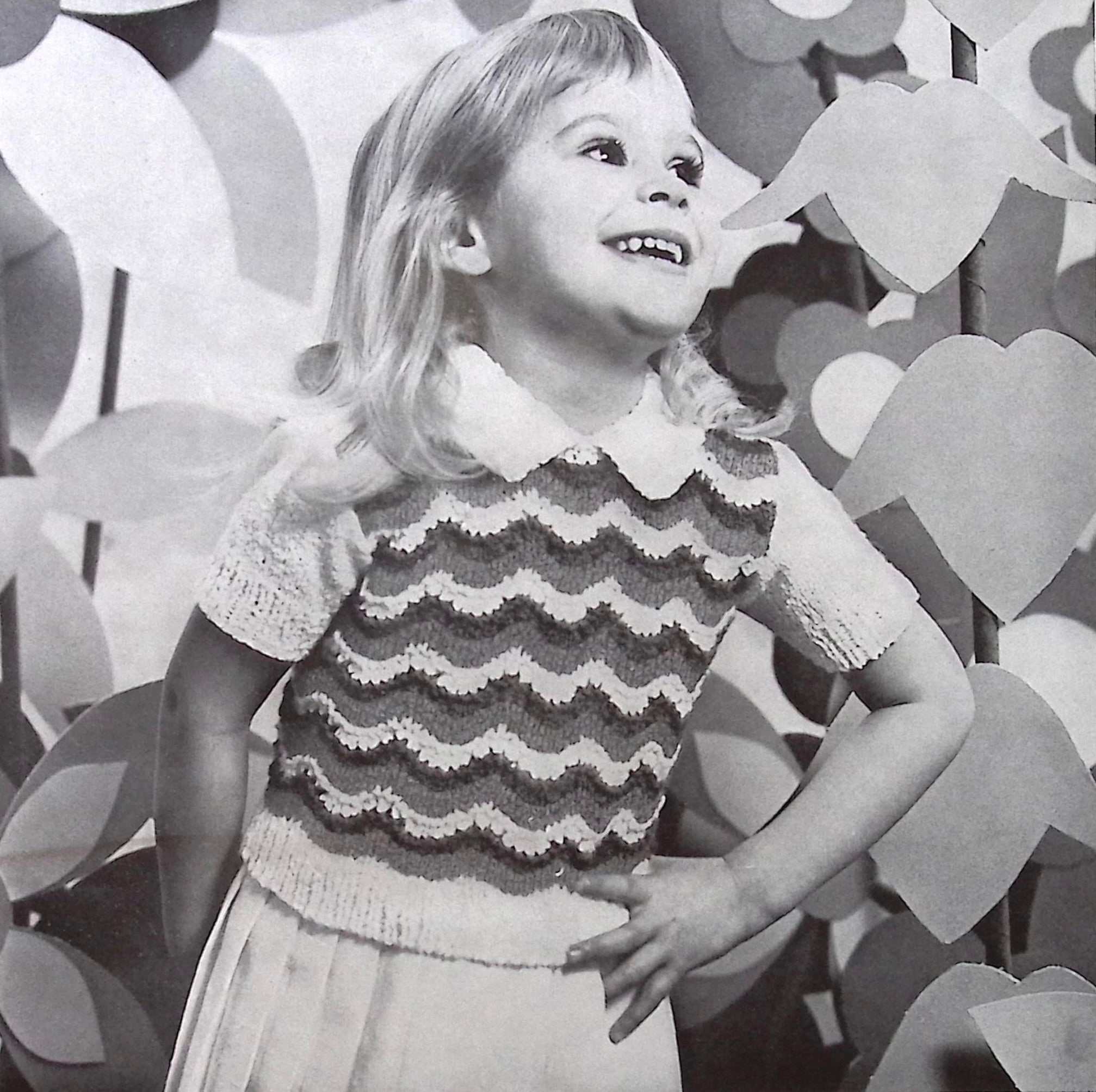 From playful pinafores perfect for picnics to cozy cardigans for cool evenings, each design is infused with the joy and magic of summertime. With detailed instructions and charming illustrations, knitters of all skill levels can easily create handmade treasures that capture the essence of childhood summers. ©1970's.