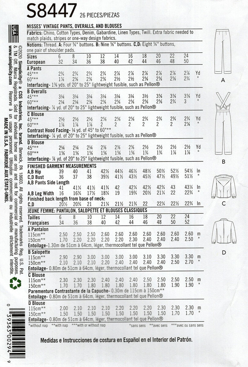 Misses’ Overalls, Pants & Blouse: Step back in time and recreate the iconic 1940s Rosie the Riveter-inspired sportswear with this timeless Misses' sewing pattern, straight from our vintage collection. Perfect for channeling the spirit of strength and empowerment from the WWII era, this versatile pattern includes everything you need to craft an authentic vintage look. The pattern features classic high-waisted pants, sturdy overalls, a versatile blouse, and an optional blouse with a functional hood for added practicality. Each piece is designed to embody the rugged yet stylish workwear of the era, giving you the perfect opportunity to create a wardrobe staple that blends comfort, durability, and vintage flair. Whether you're a seasoned sewist or new to the craft, this pattern allows you to pay homage to a defining moment in fashion history while expressing your unique style. ©1940’s.