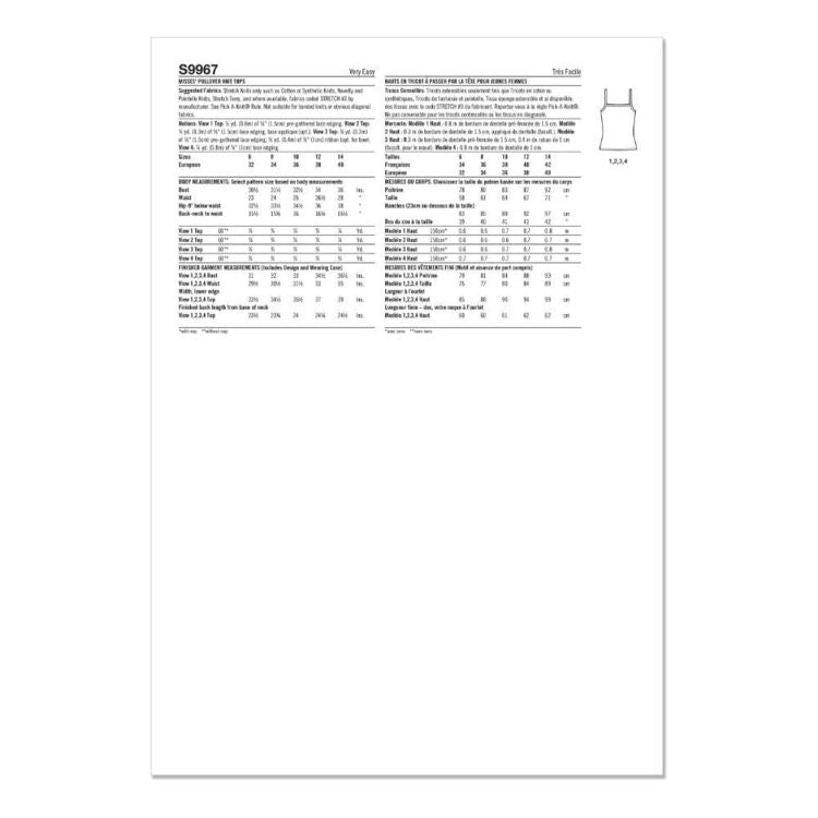 Misses’ Tops: These Vintage Simplicity ‘80s pullover tops are designed for stretch knit fabrics. The pattern includes top-stitched designs with self-banded straps and lace trims. Customise your top with a self-ruffle flounce, an optional lace applique, a satin ribbon trim, or a mock wrap front. Perfect for adding a personal touch to each piece, this pattern offers versatile and stylish options for your wardrobe. ©1980’s.