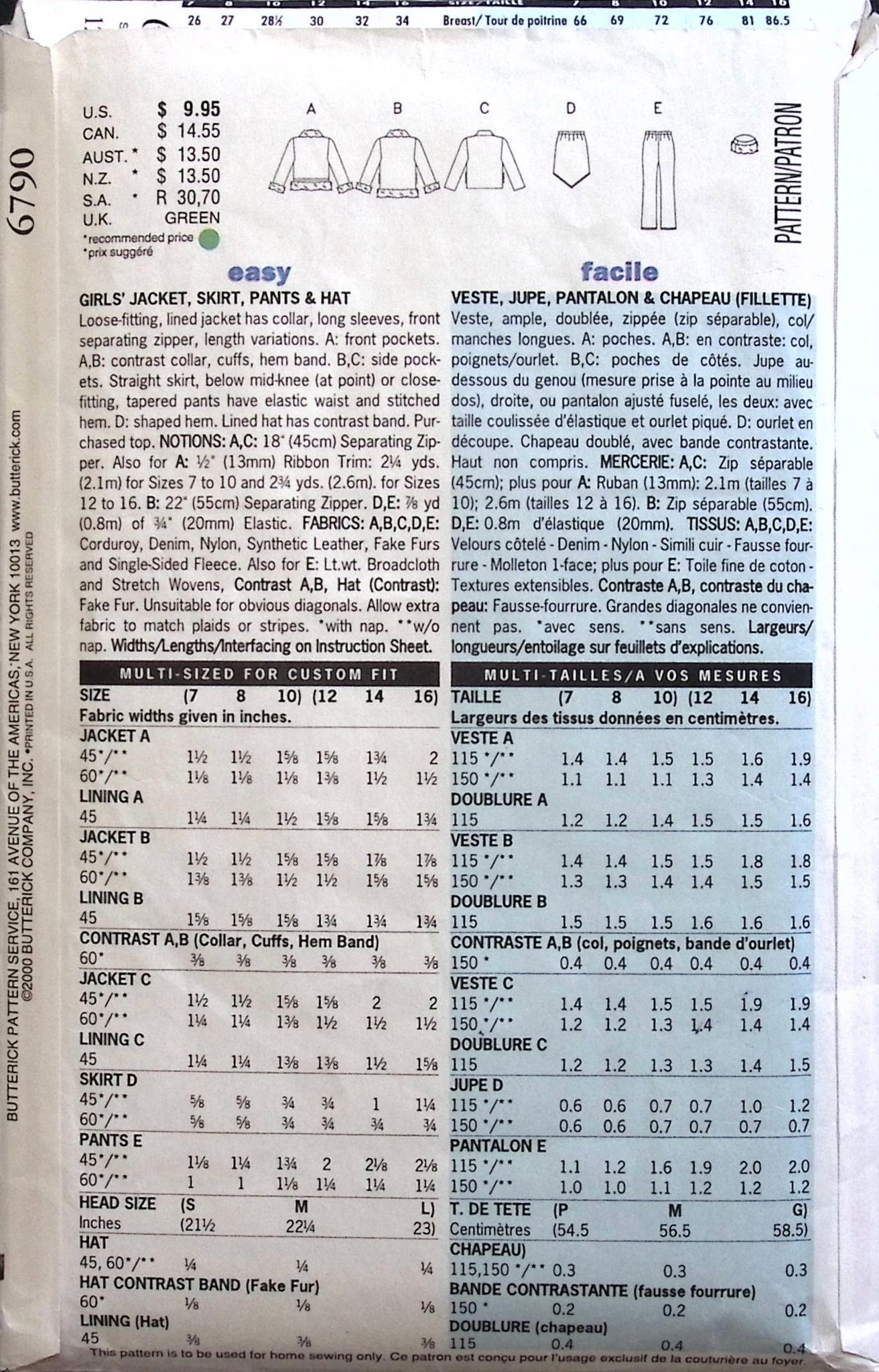 Girl’s Jacket, Skirt, Pants & Hat: The loose-fitting lined jacket, with its collar and front zipper, offered various length options for added style. Paired with a straight skirt falling below the knee and close-fitting tapered pants, the outfit provided both sophistication and comfort. Completing the look was a lined hat, adding a chic finishing touch to the ensemble. ©2000.