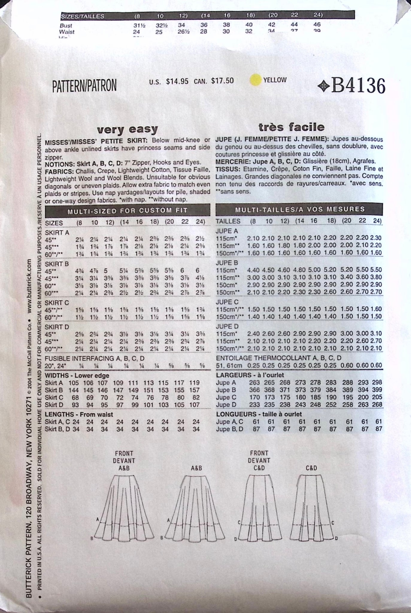 Misses’ Skirts: This pattern offers six designs that are both fast and easy to make. These skirts, available in lengths below mid-knee or above ankle, feature princess seams and a convenient side zipper for a flattering fit and easy wear. Whether you prefer a shorter or longer length, these unlined skirts are designed for simplicity and style. ©2004.