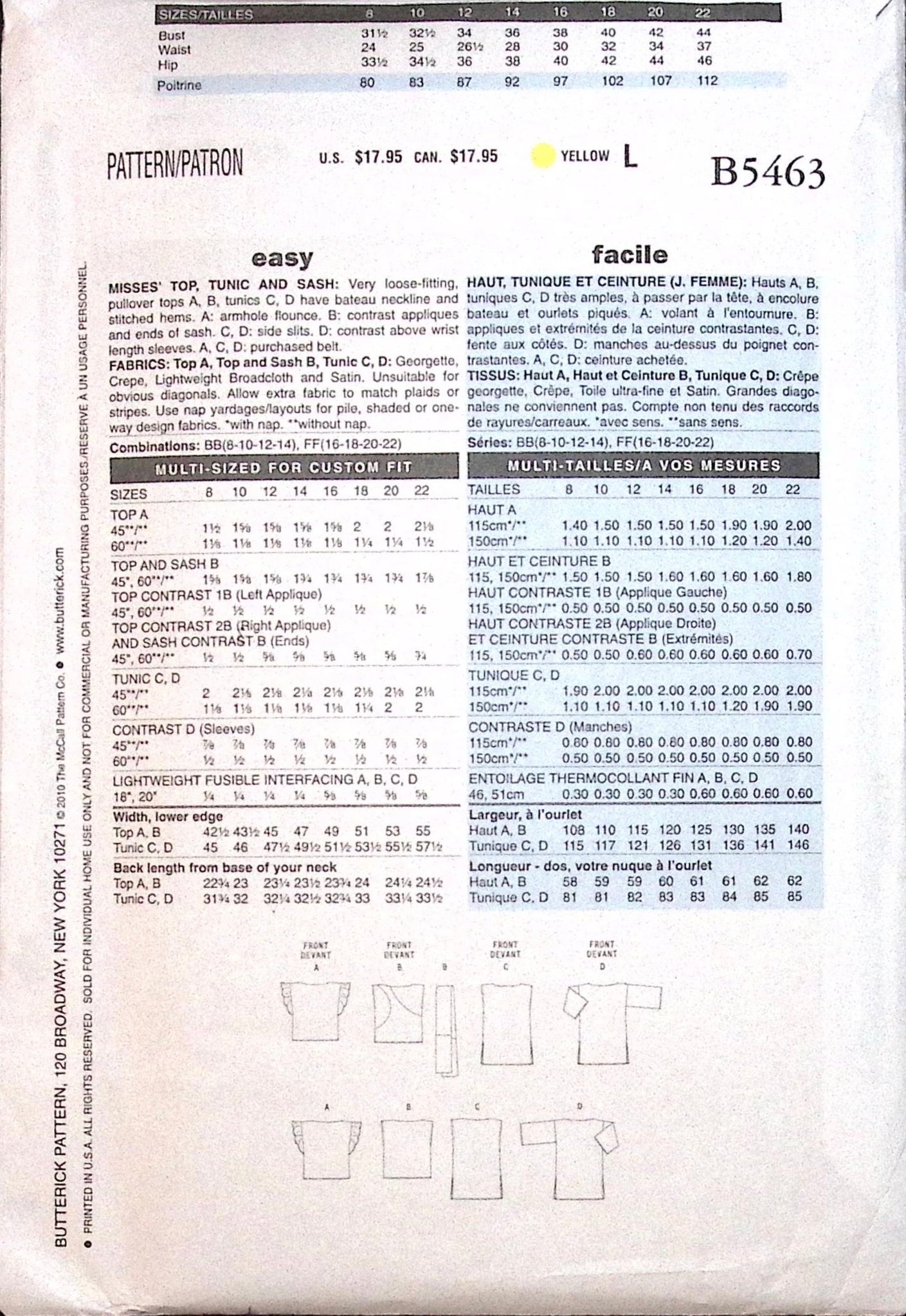 Misses' Top, Tunic & Sash: Create easy, very loose-fitting pull-over tops and tunics with a bateau neckline and stitched hems. Options include armhole flounces, contrast appliques, side slits, and contrast above wrist-length sleeves, allowing you to customise your look. ©2010.
