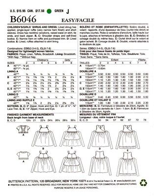 Child's Dress & Shrug: Get ready to sew up some serious style with the Sewing Pattern: Butterick B6046! This pattern features a child's dress and lined shrug complete with adorable neckline variations, a raised waist, and a full skirt. The shrug even includes a single layer ruffle and short sleeves for an extra touch of cuteness. Let your creativity run wild and make some fashion magic for your little one! ©2014.