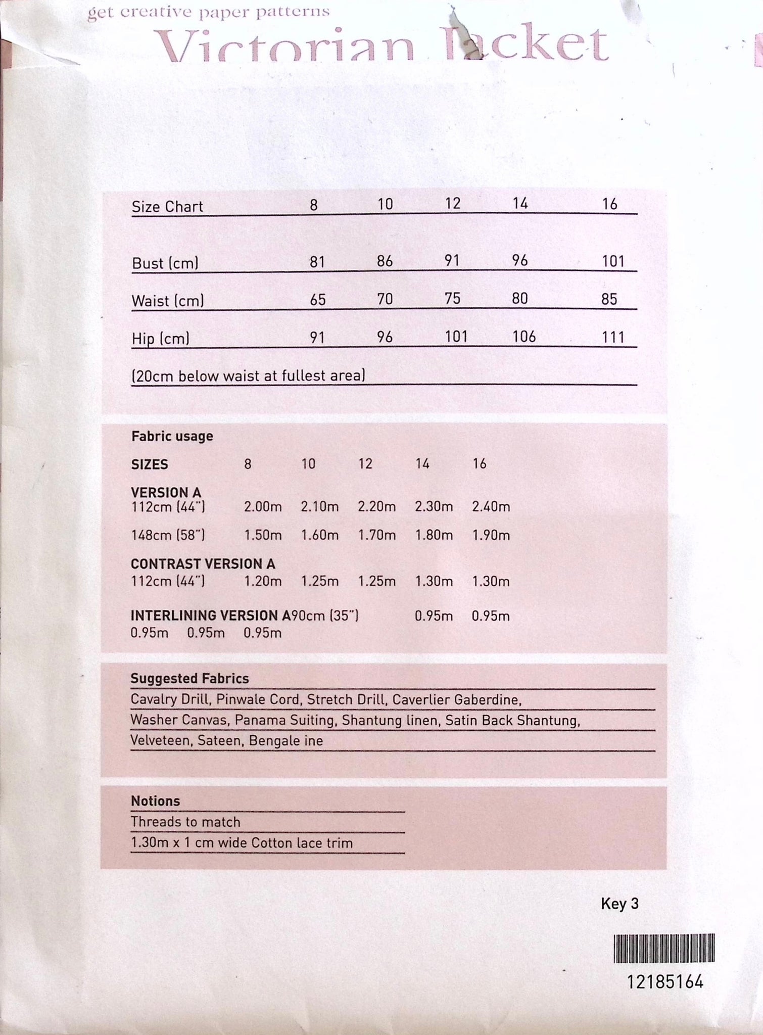 Misses’ Jacket: Is tailored, emphasising the waist and creating a polished, refined look reminiscent of Victorian fashion. The sleeves are long, and fitted.. Overall, a Misses Victorian-style jacket pattern allows for the creation of a timeless and sophisticated garment with a nod to the fashion of the 19th century.