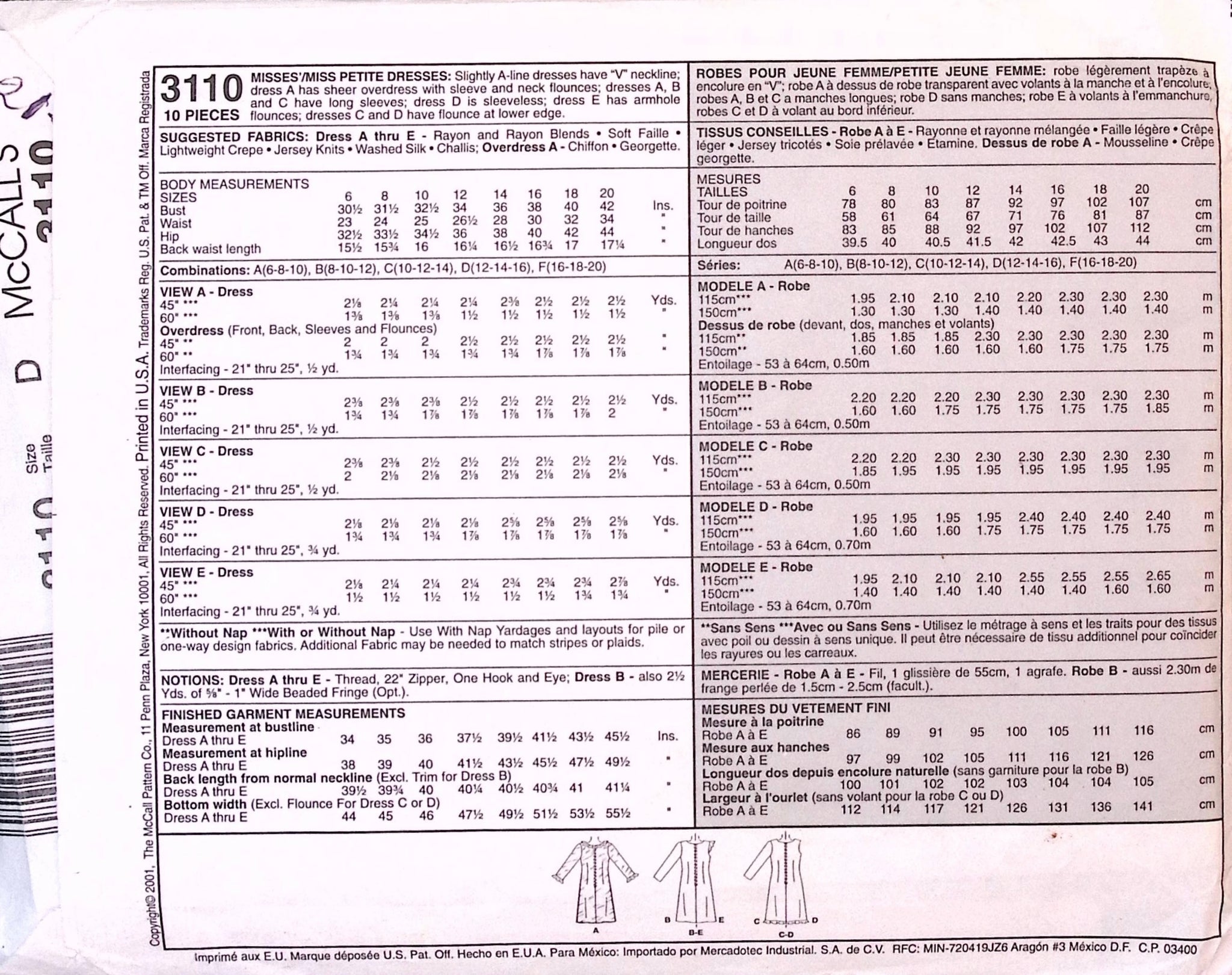 Misses' Dress: Explore the graceful charm of these slightly A-line dresses, each featuring a chic "V" neckline. Dress A stands out with its sheer overdress adorned with sleeve and neck flounces, adding an extra touch of elegance. Dresses A, B, and C boast long sleeves, while Dress D takes on a sleeveless silhouette. For a playful twist, Dress E features armhole flounces, while Dresses C and D showcase a flounce at the lower edge. Whether opting for sophistication with sleeves or embracing a more breezy sleeveless design, these dresses offer a variety of stylish options with flattering details for any occasion. ©2001.