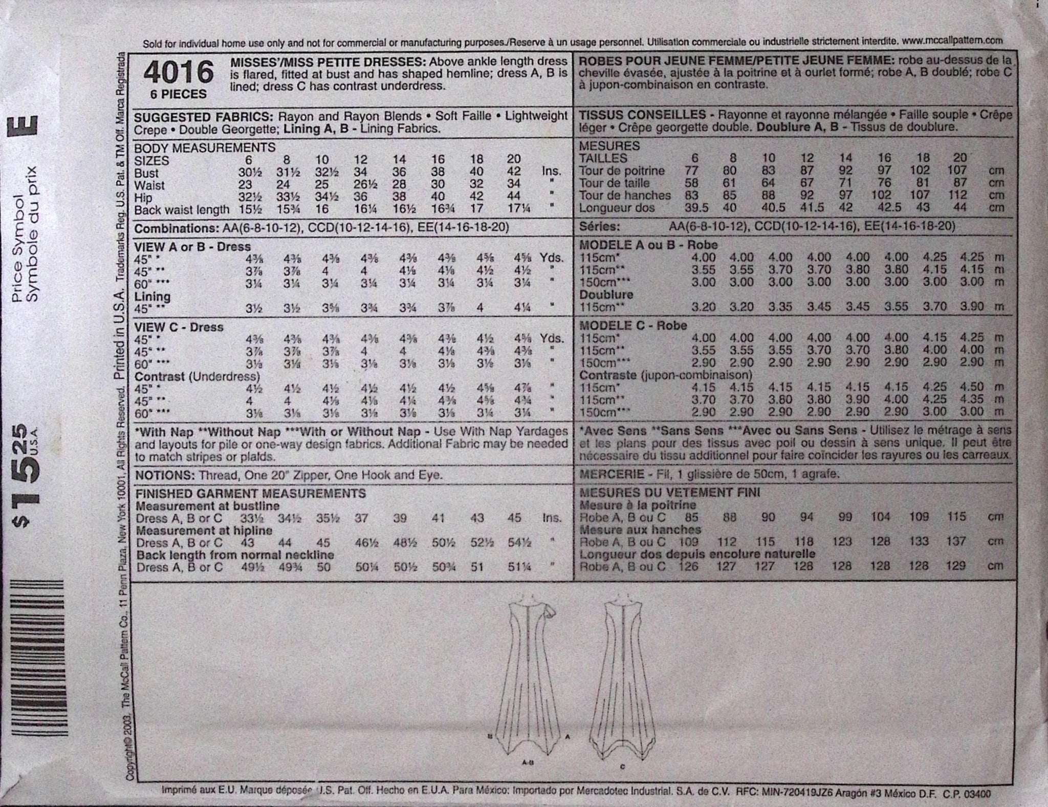 Misses' Dress: The dress is expertly crafted, flaring out and fitting snugly at the bust, accentuating a flattering silhouette. The unique touch of a shaped hemline adds a playful and distinctive element to the design. With two sleeve variations, this pattern provides versatility, allowing you to choose between different looks to suit various occasions. Whether you prefer a sleeveless, summer-ready style or an option with butterfly sleeves for added coverage, this pattern is a perfect canvas for creating dresses that effortlessly blend sophistication and individuality. ©2003.