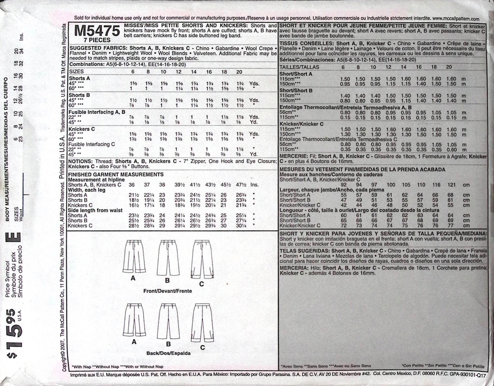 Misses' Shorts & Knickers: Whether you're opting for a classic and tailored look with the cuff or a more relaxed vibe with the band, these bottoms are sure to become wardrobe essentials for warm-weather days or casual outings. With the mock fly front adding a touch of authenticity, this pattern offers endless possibilities for creating stylish and comfortable bottoms for any occasion. ©2007.