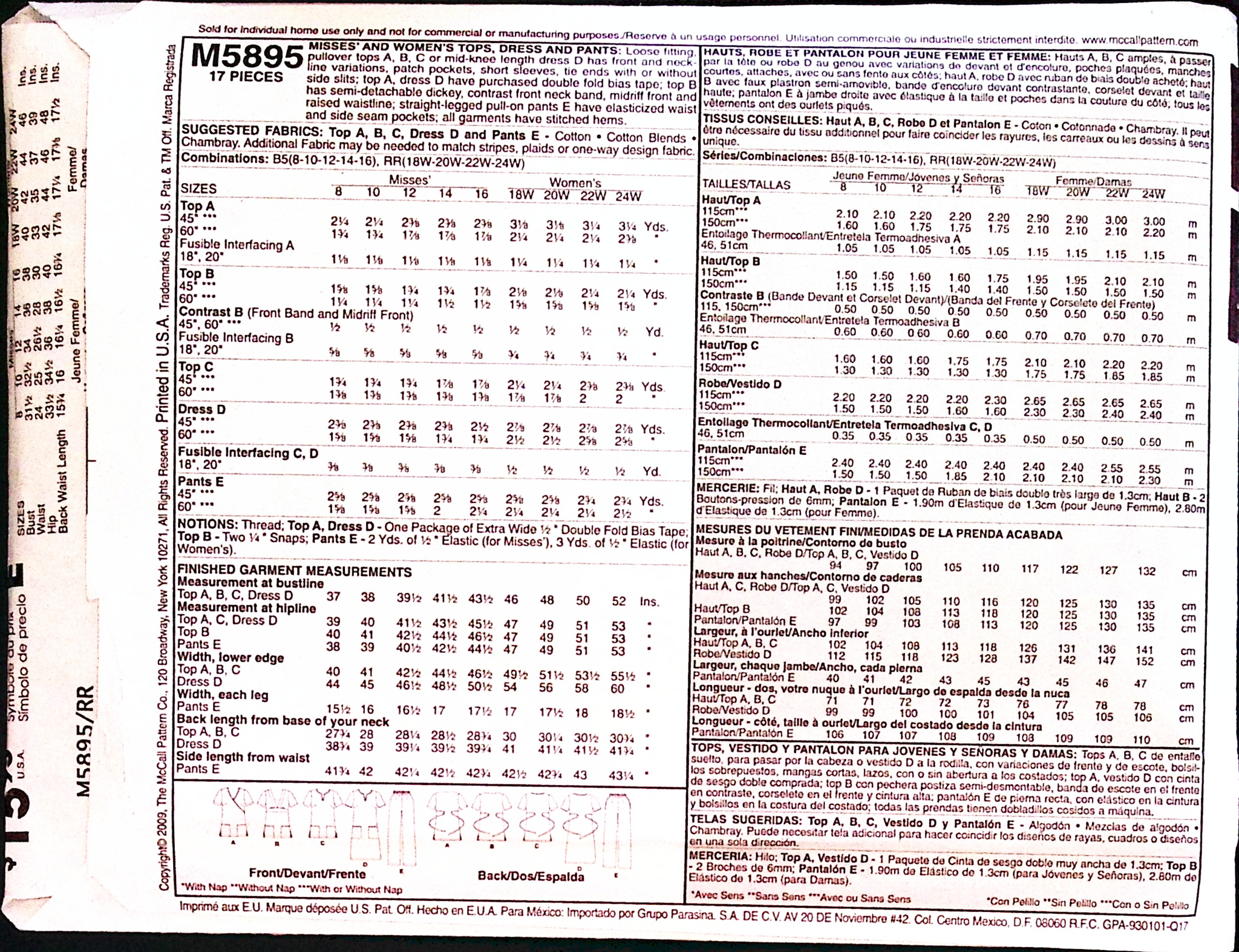 Scrubs and Uniforms: Craft comfortable and functional scrubs with this versatile pattern. The loose-fitting pullover scrub top or mid-knee length dress offers front and neckline variations, patch pockets, short sleeves, tie ends, and optional side slits. Option A features a surplice bodice, while option B includes a semi-detachable dickey, contrast front neck band, and midriff front with an empire waistline. Options C and D showcase a neckline notch for added detail. The straight-leg pull-on pants feature an elasticised waist and side seam pockets for practicality. All garments are completed with stitched hems, ensuring a professional finish for your scrubs and uniforms. ©2009.