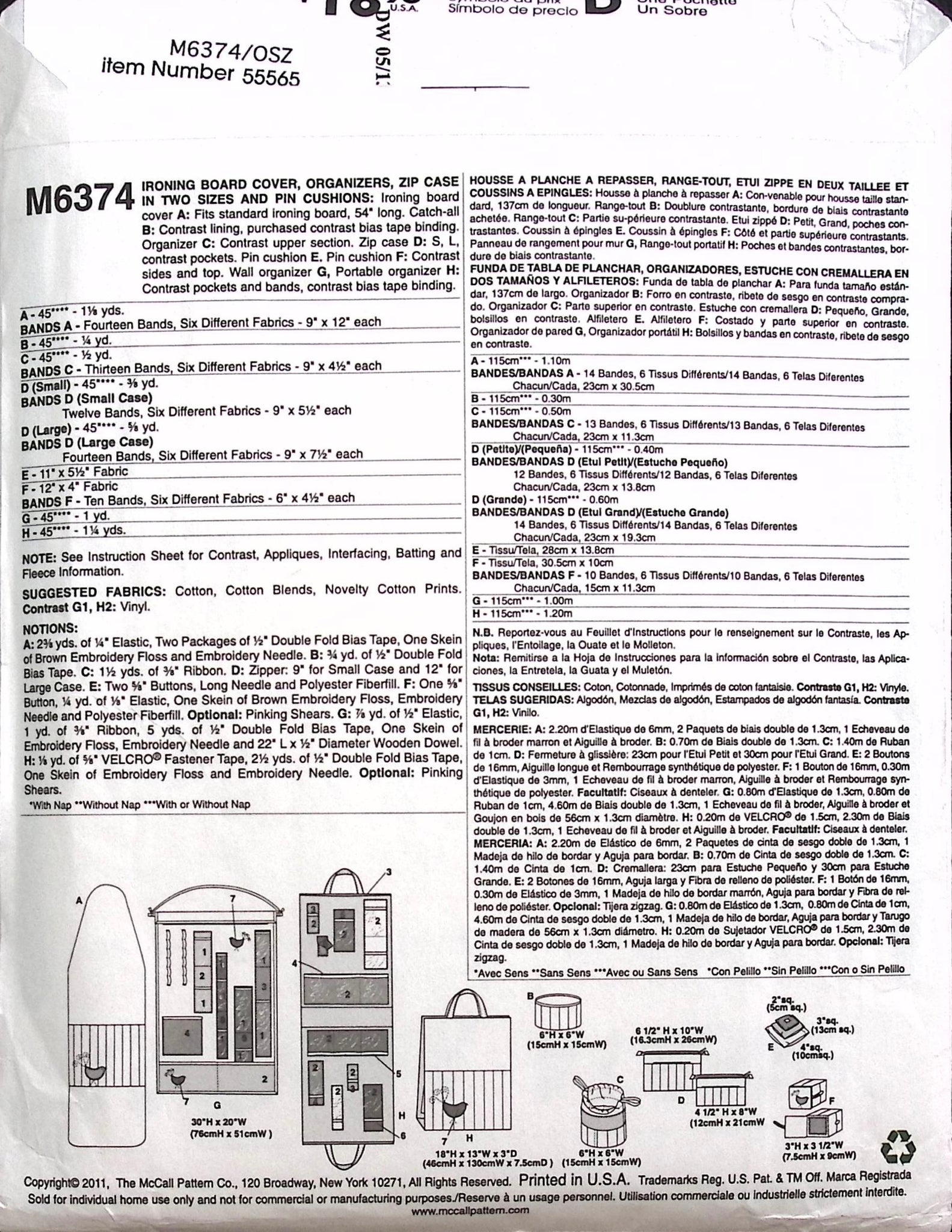 Ironing Board Cover, Organisers, Zip Cases & Pin Cushion: Transform your ironing board into a stylish and functional workspace with a custom cover that not only protects but adds a touch of flair. Stay organized with the organizers, perfect for tidying up your sewing notions and keeping everything within reach. The zip case, available in two sizes, offers a practical solution for storing various items with ease and convenience. Complete your sewing haven with a charming pin cushion that combines form and function. This comprehensive set of patterns provides you with the tools to create a coordinated and efficient sewing environment. Get ready to enjoy a clutter-free and creatively inspiring sewing space with these delightful and practical sewing accessories. ©2011.