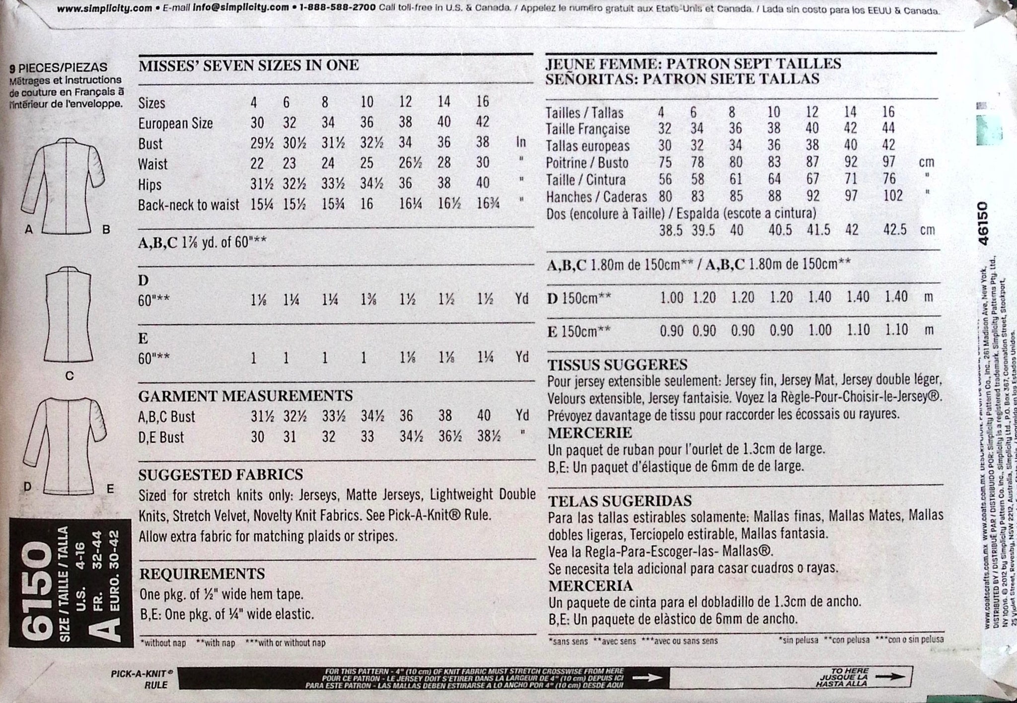 Suggested Fabrics: Designed for Stretch Knits Only such as Jersey, Matte Jersey, Lightweight Double Knits, Stretch Velvet, Novelty Knit Fabrics.