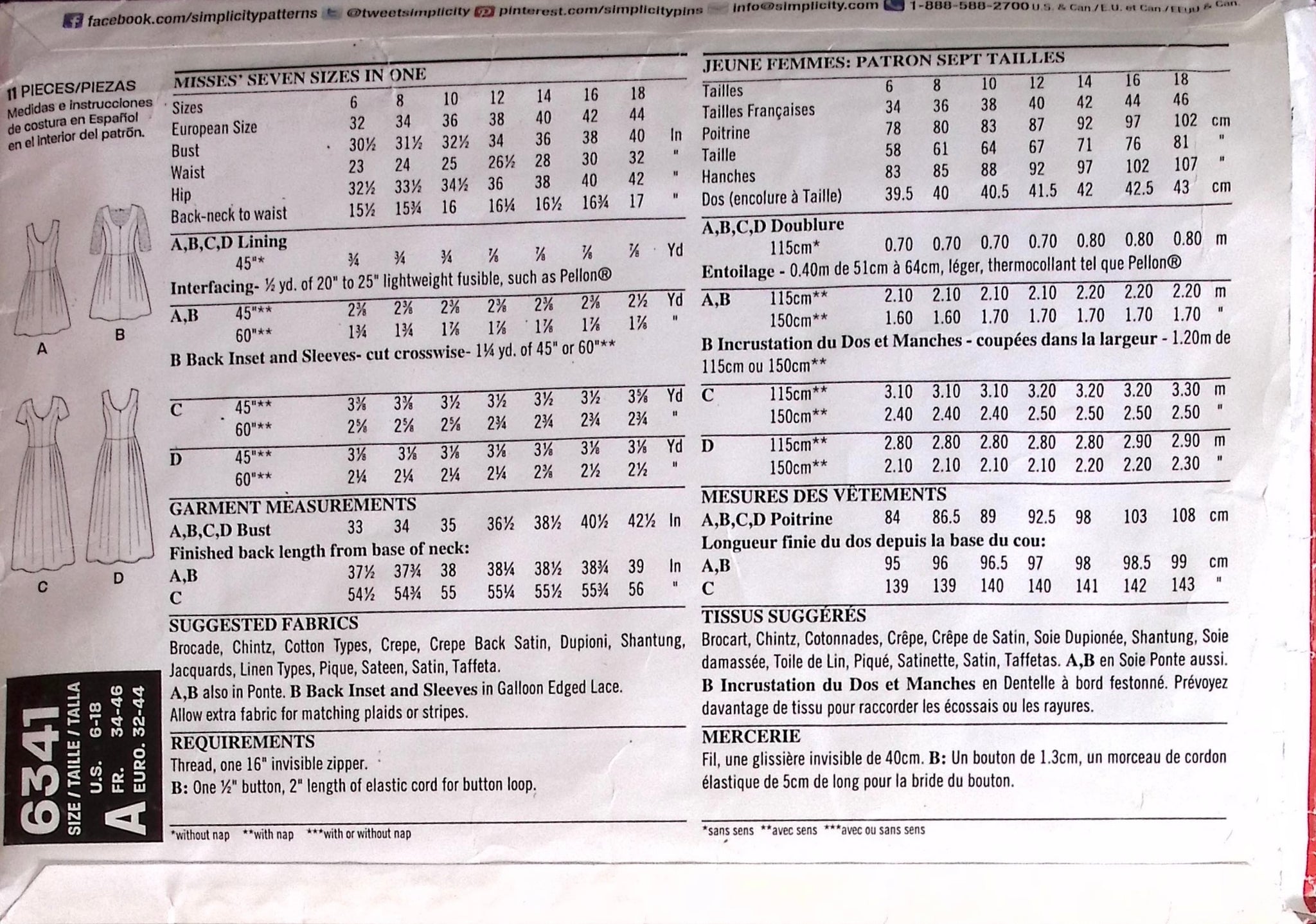 Condition: Pattern is Separated & Cut to Size 6. Piece 7 Skirt Front has a rip on side edge. Cover in Good Shape.