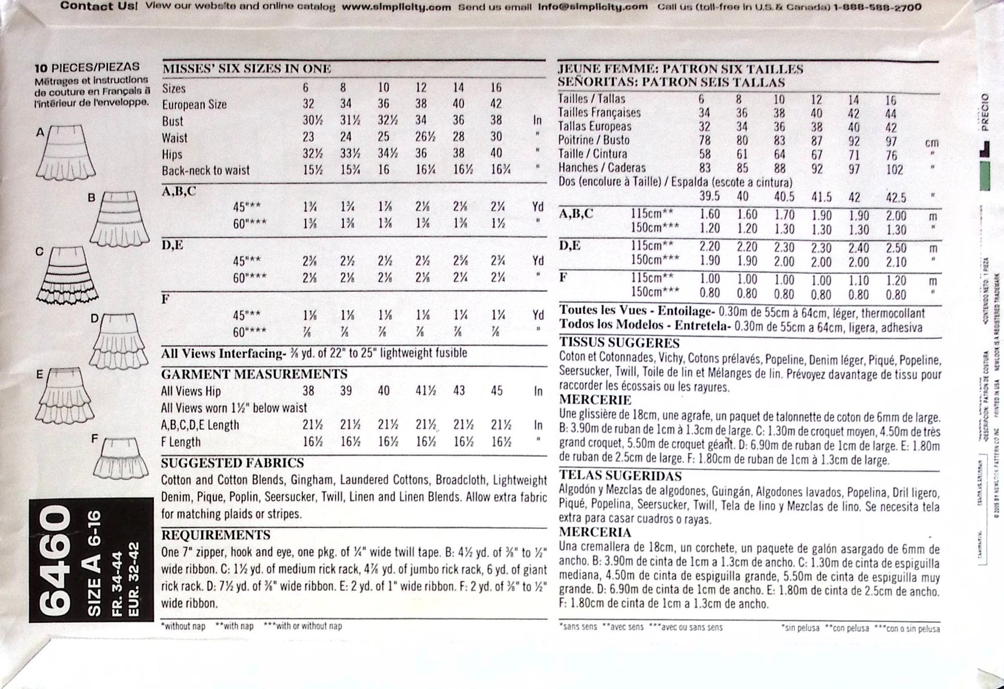 Misses’ Skirts: This pattern set includes a range of skirt styles, from classic to trendy, each with unique detailing for added flair. Whether you prefer ruffles, lace, or decorative trims, this pattern set has something for everyone. ©2005.