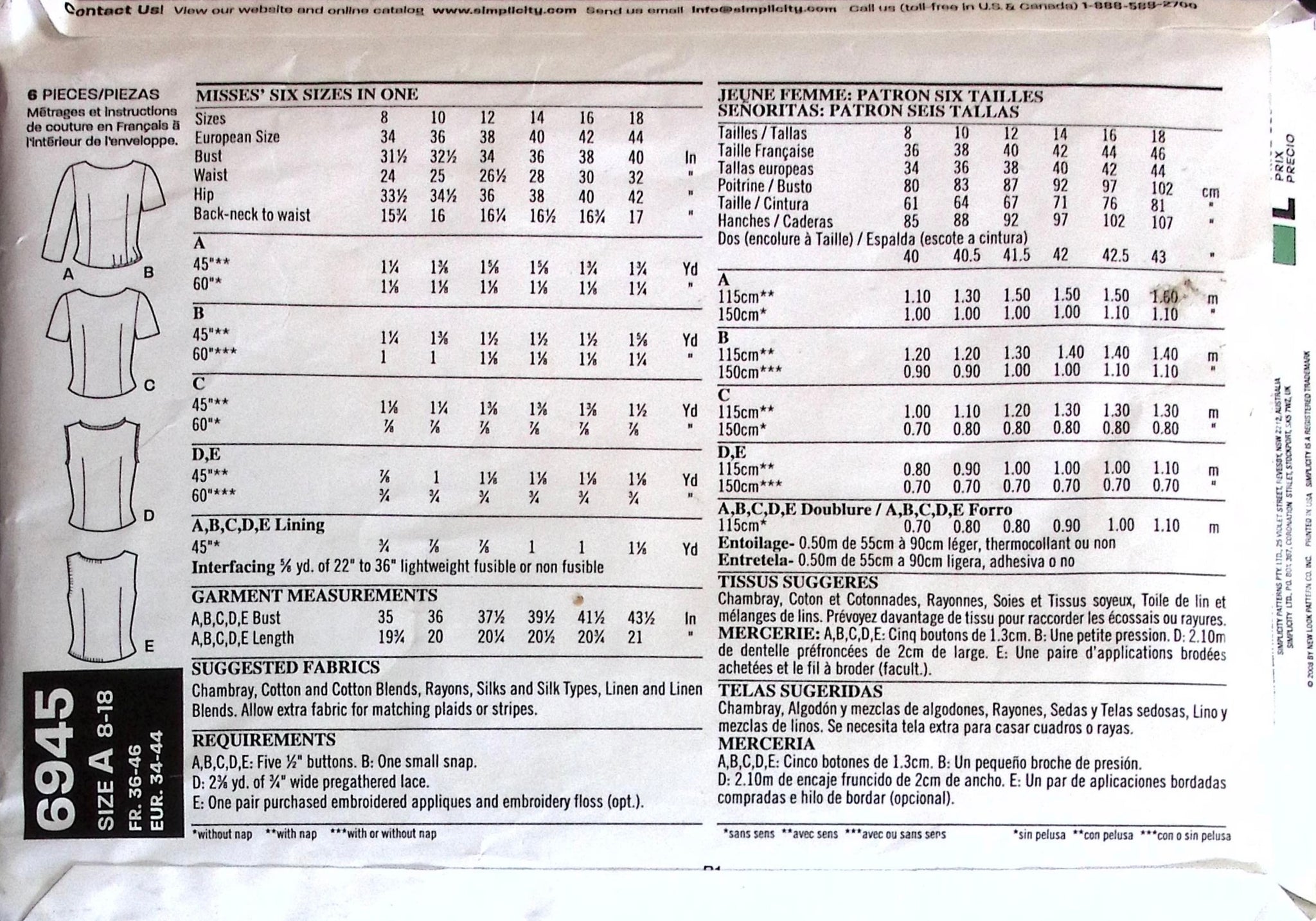 Misses’ Tops: This pattern allows you to create tops tailored to your preference, whether you prefer sleeveless, short sleeves for a casual look or long sleeves for added coverage. The semi-fitted silhouette ensures a flattering fit for all body types, while the button-front closure adds a touch of sophistication. With this pattern, you can easily create a wardrobe of tops that can be dressed up or down for any occasion. ©2008.