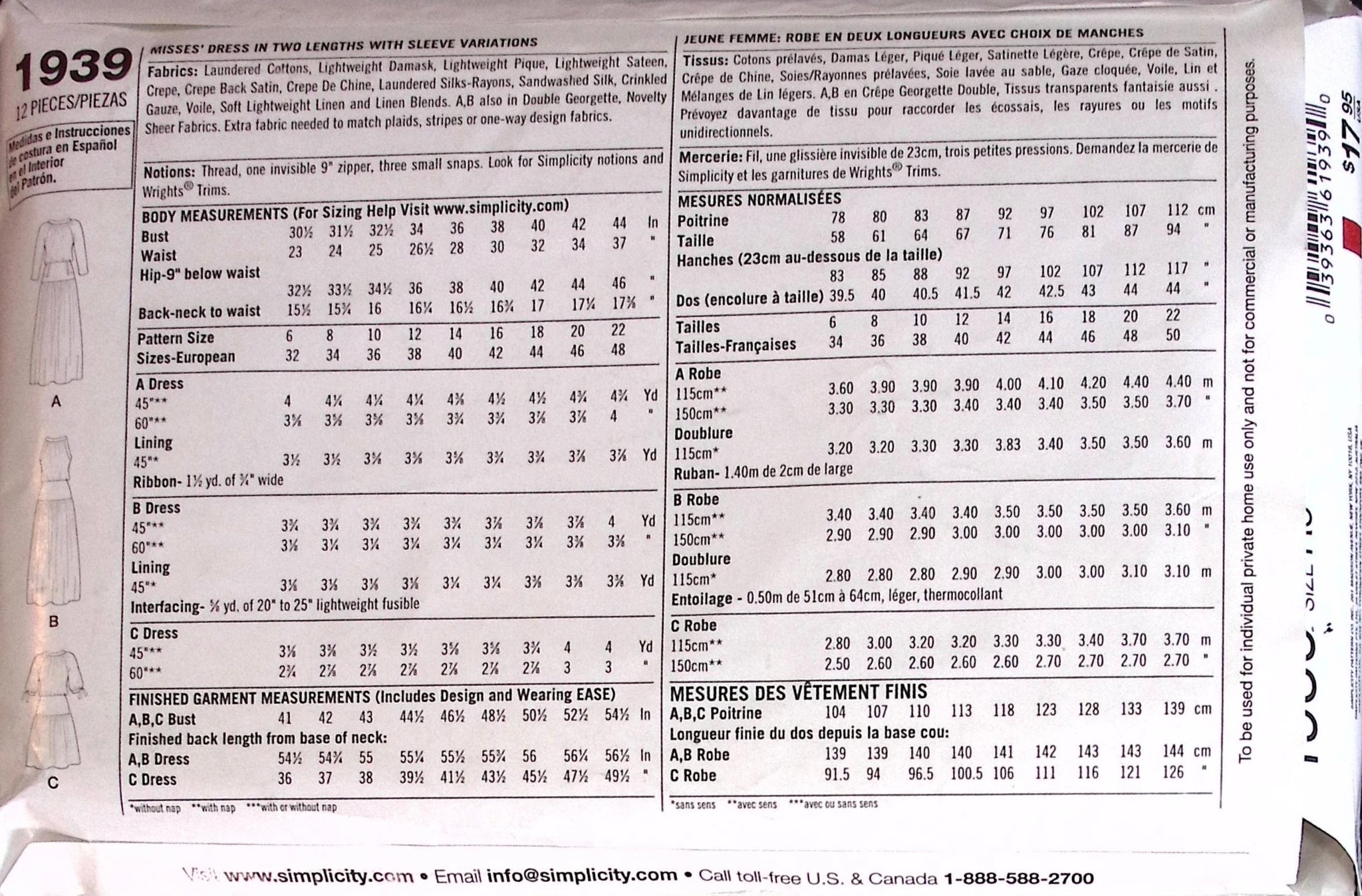 Misses' Dress: Get ready to unleash your inner designer with the Simplicity 1939 Sewing Pattern! Designed by Cynthia Rowley, this pattern includes a stylish misses dress with versatile sleeve variations and comes in two lengths. Perfect for creating the dress of your dreams with ease. Time to sew in style! ©2011.