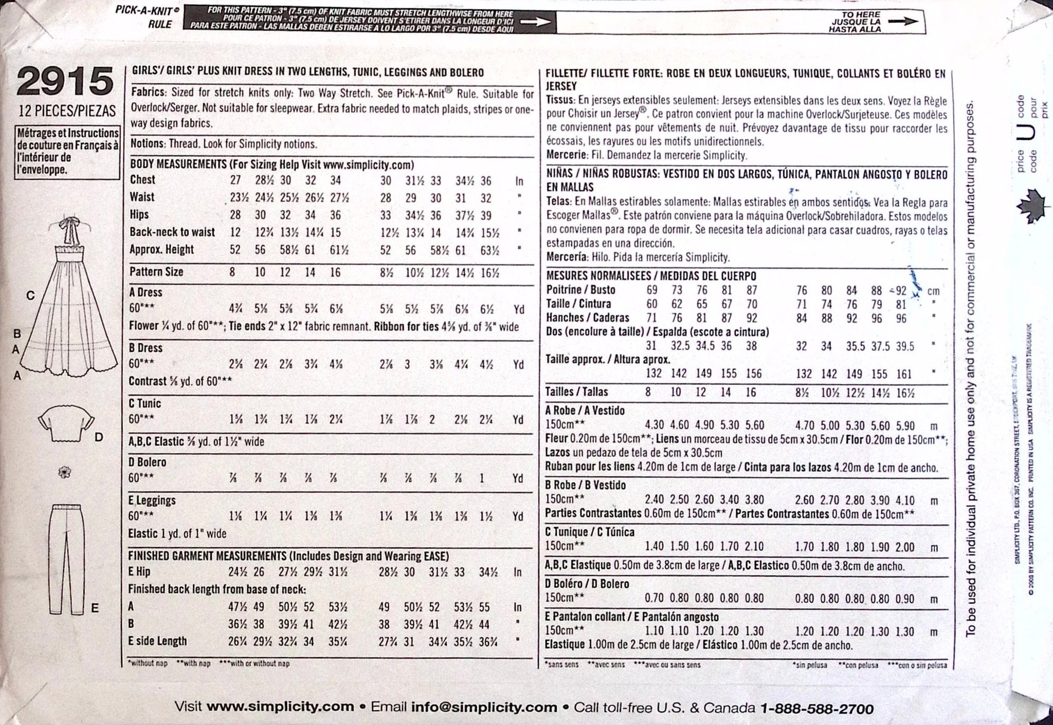Girl's Dress, Tunic, Leggings & Bolero: Learn To Sew Pattern: Have fun sewing with this quirky Simplicity 2915 dress pattern by Grechen Teen! It's perfect for teens wanting to make their own dress, tunic, leggings, or bolero. With easy ribbon ties, sewing tips, and a learning pattern, it's a great way to improve sewing skills. ©2008.