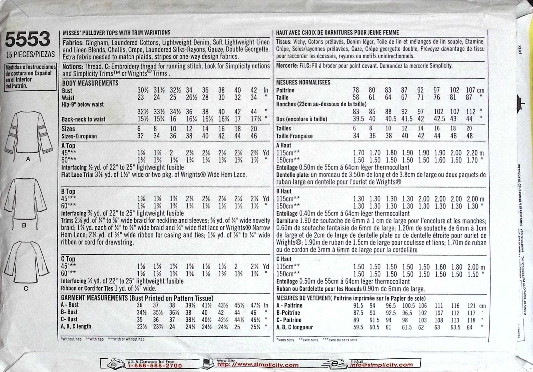 Misses’ Tops: Perfect for both beginners and seasoned sewists alike, this sewing pattern offers a stylish yet simple way to create versatile tops that suit your style. Whether you're adding lace, ribbons, or other embellishments, these tops are sure to become staples in your closet. Ideal for those new to sewing or looking for a quick and easy project, this pattern is designed with simplicity in mind. ©2003.