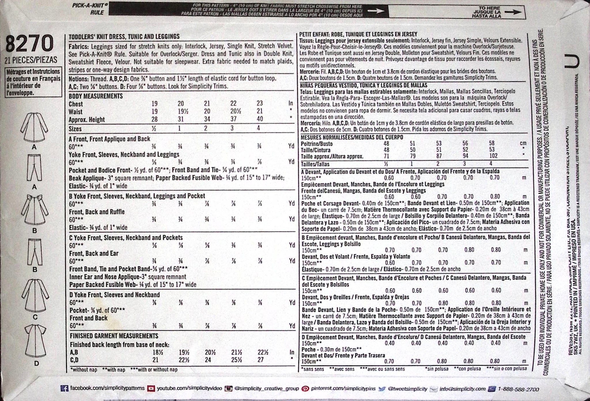 Suggested Fabrics: Leggings Designed for Stretch Knits Only such as Jersey, Interlock. Dress & Tunic in Double Knit.