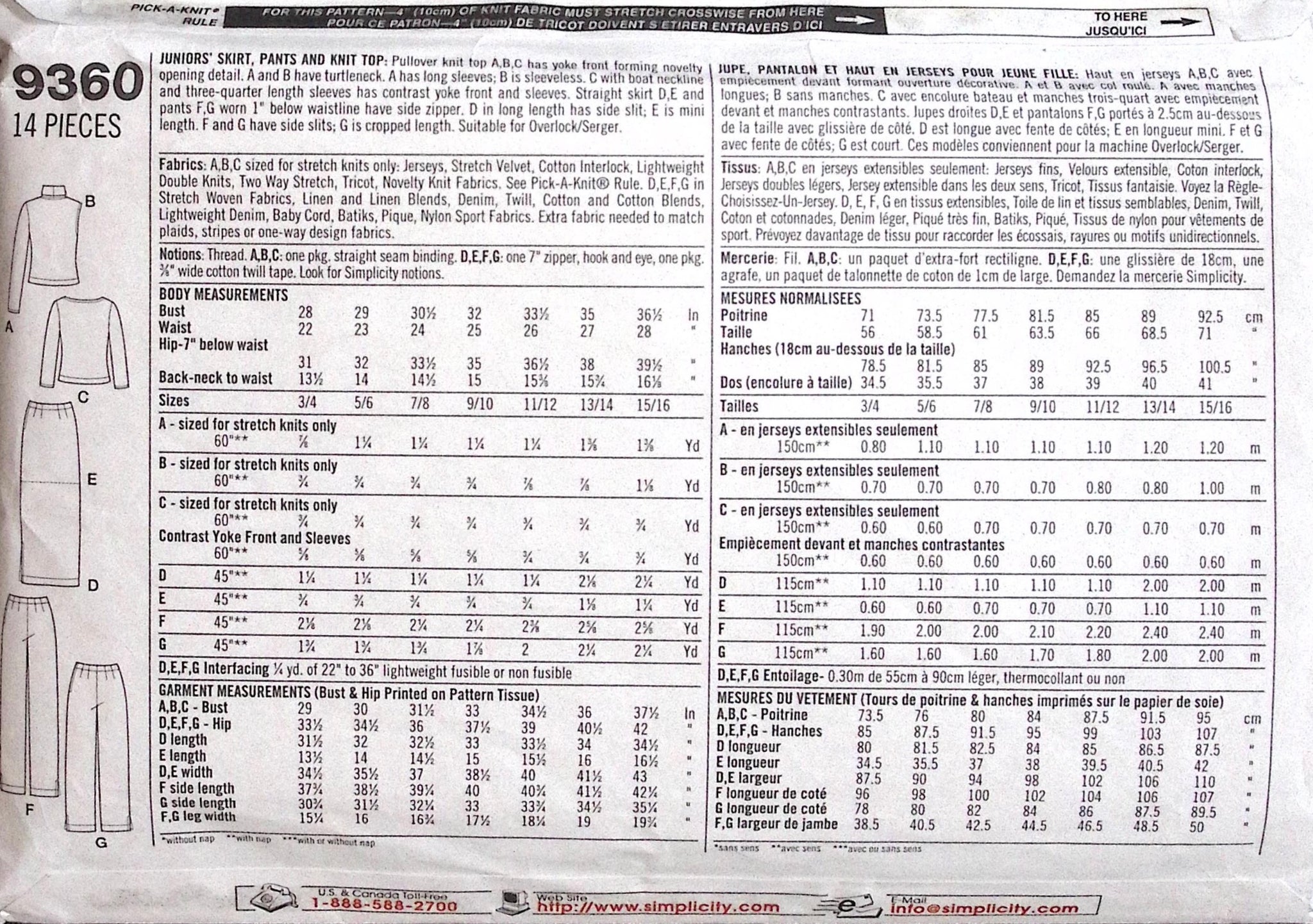 Girls’ Skirt, Pants & Top: The pullover top steals the spotlight with its unique novelty opening detail on the front, available in long, three-quarter, short, or sleeveless options, and featuring the choice of a boat neckline. The skirt, available in two lengths, and pants complete the ensemble, providing options for various occasions and preferences. This pattern invites creativity and customisation, allowing you to craft a delightful wardrobe for the young fashionista that seamlessly blends comfort and trendiness. ©2000.