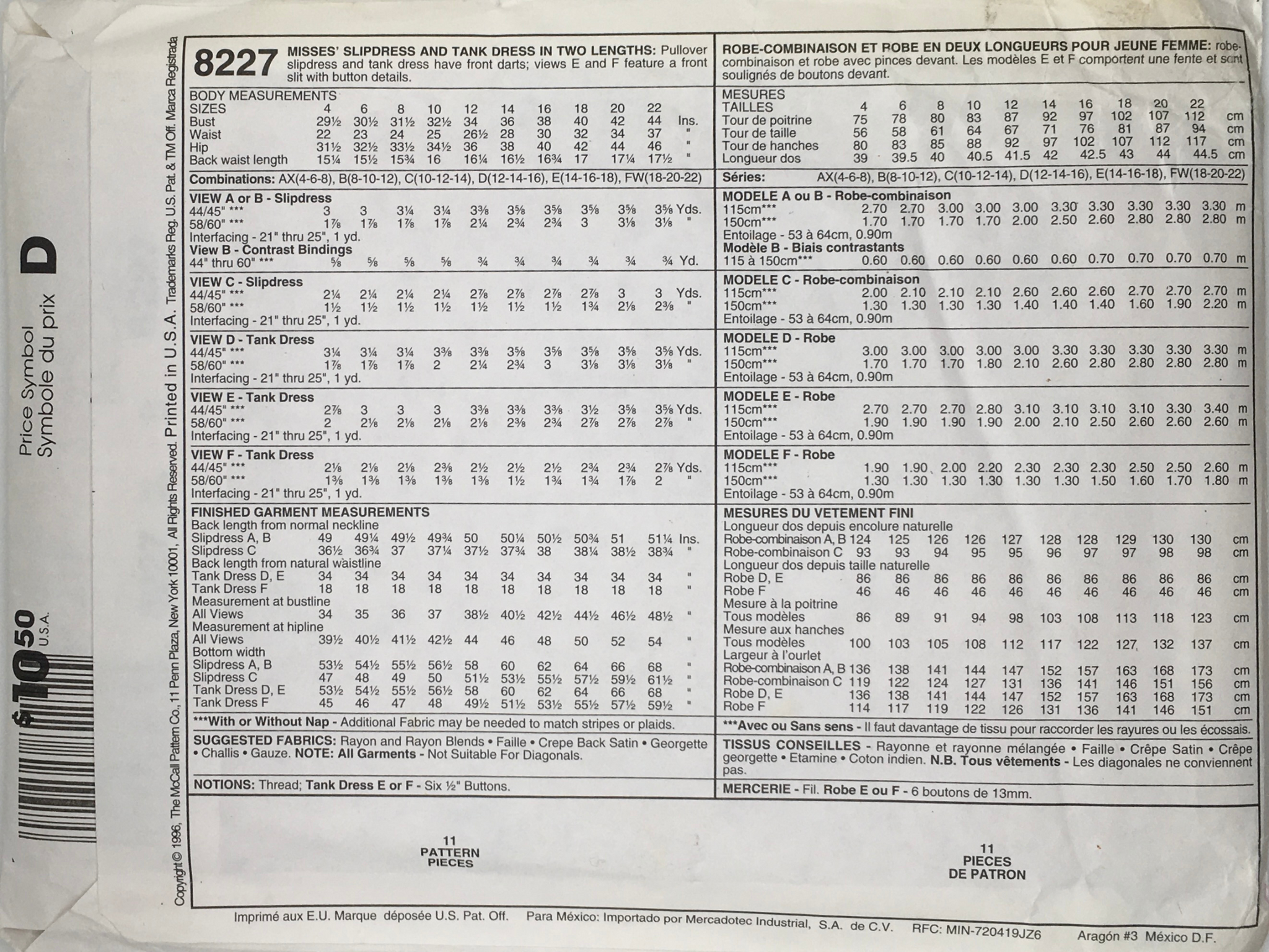Misses’ Slipdress & Tank Top Dresses in Two Lengths: The dresses feature front darts for a flattering fit and offer an option for a front slit with button details, adding a stylish touch to your wardrobe. ©1996. Rare Find!