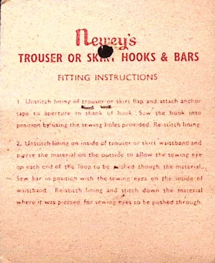 Add a vintage touch to your sewing toolkit with the Vintage Newey's Trouser Hook & Bar set. These high-quality fasteners are perfect for completing or fixing any crafting or sewing project. Plus, their rust-resistant design makes them easy to store and long-lasting. A must-have for any sewing enthusiast! ©1960's.