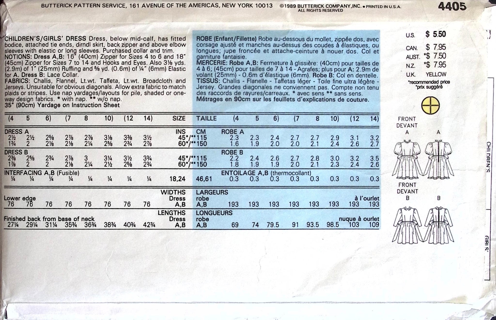 Girl’s Dress: A charming design with a below mid-calf length, featuring a fitted bodice and attached tie ends for a flattering silhouette. The dirndl skirt adds a touch of whimsy, while the back zipper ensures easy dressing. The dress comes with options for above-elbow sleeves with elastic or long sleeves, providing versatility for different occasions. Additionally, you can personalise the dress with purchased collar and trim to add extra flair and style. ©1989.