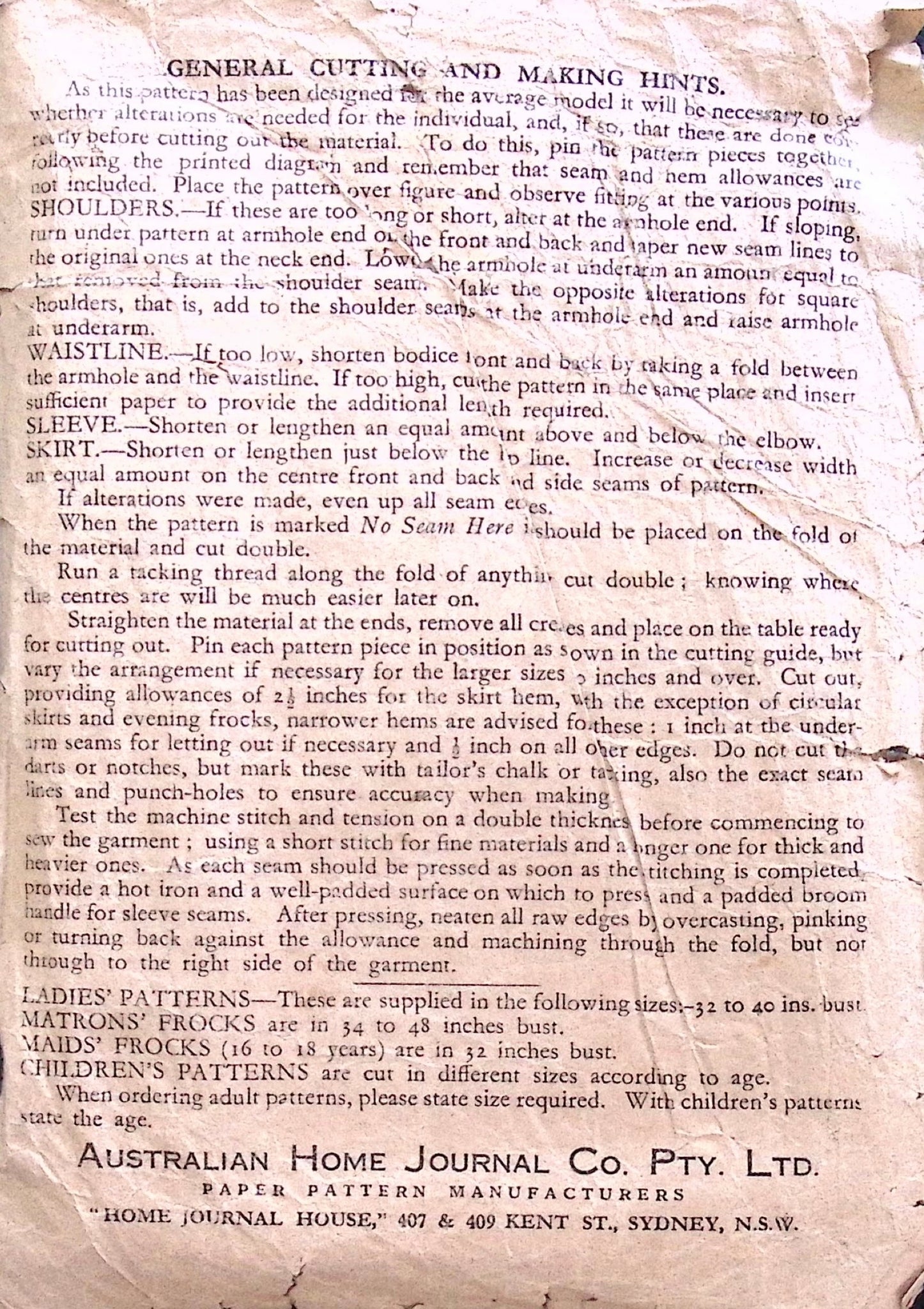 Condition: This pattern has unprinted, factory pre-cut pieces identified by perforations. All pieces are complete with limited instructions on back of cover. Piece for Half Front is Torn & Taped. Cover in Poor Shape.