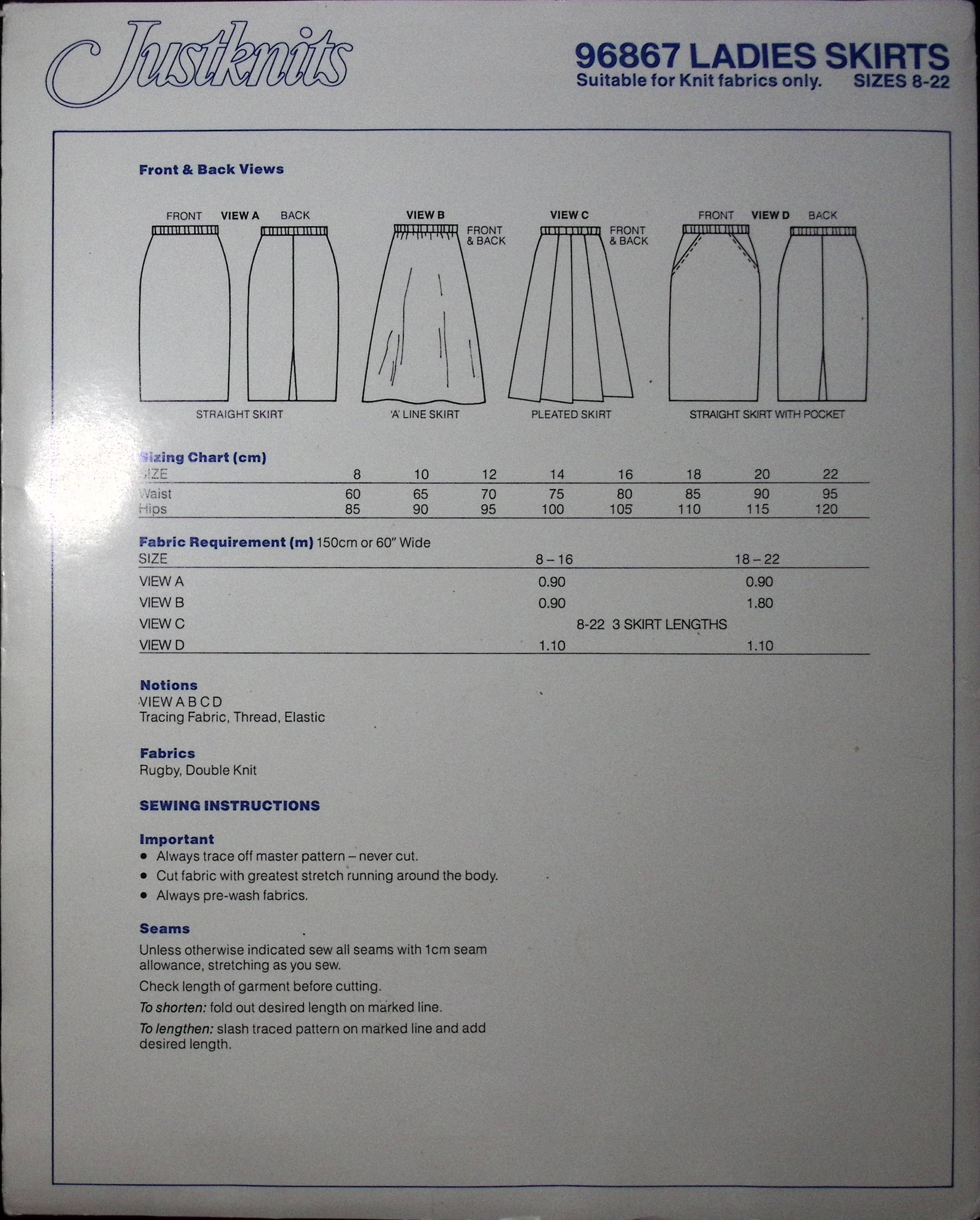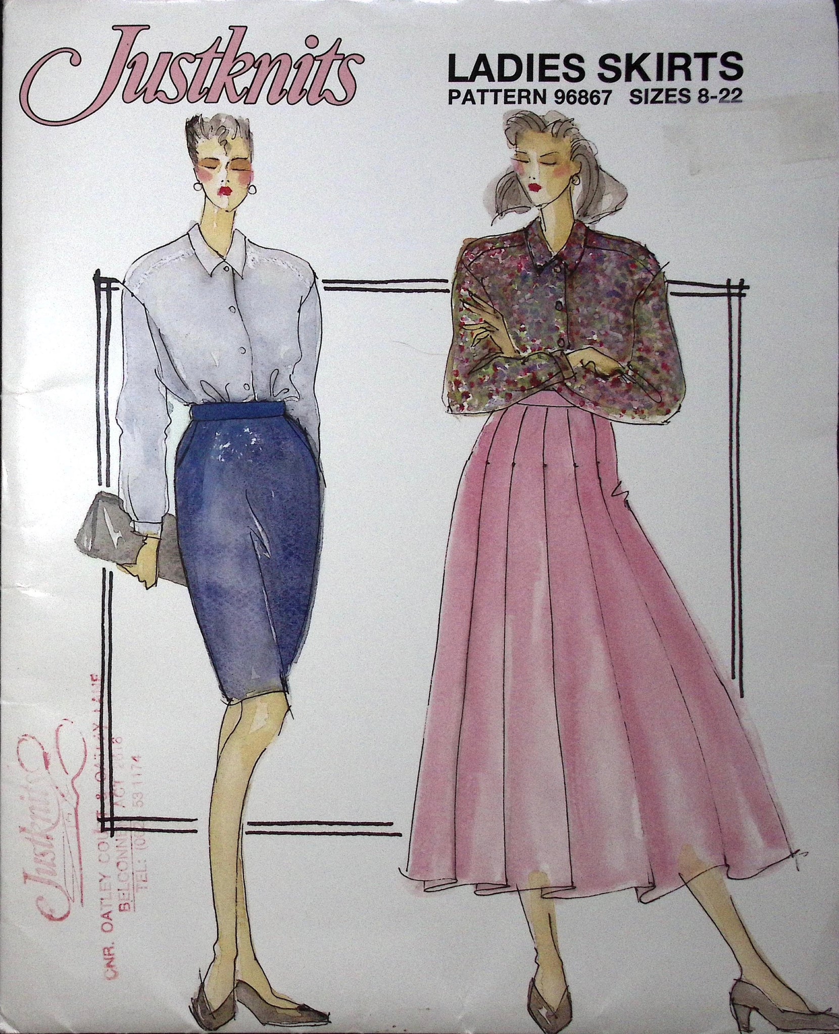 Misses’ Skirts: This versatile pattern offers a trio of chic skirt options to suit your fashion preferences. Choose between a classic pencil skirt, available with or without side pockets and a back vent for ease of movement, an A-line skirt for a timeless silhouette, or a pleated skirt for added flair. All designs feature an elastic casing at the waist, ensuring a comfortable and personalized fit. With this pattern, you can effortlessly create a wardrobe staple that seamlessly combines comfort and style. ©1980's.