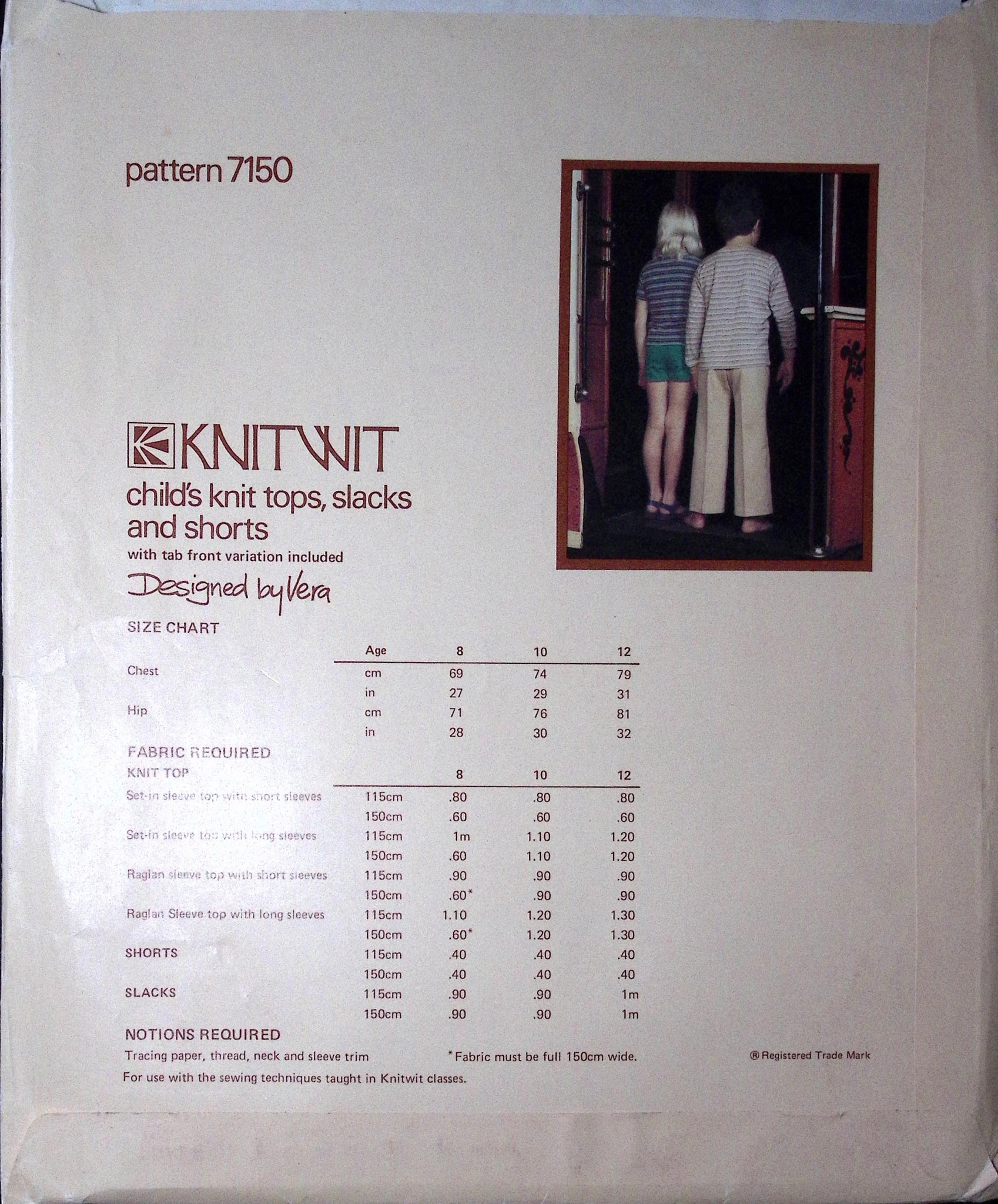 Child's Tops, Slacks & Shorts: Crafted specifically for knits, this pattern offers a variety of options including tops, slacks, and shorts. Create adorable and comfortable ensembles that reflect the vibrant and fun style of the era. Perfect for both casual and active wear, this pattern is a fantastic addition to any sewing project for your little ones. ©1980's.