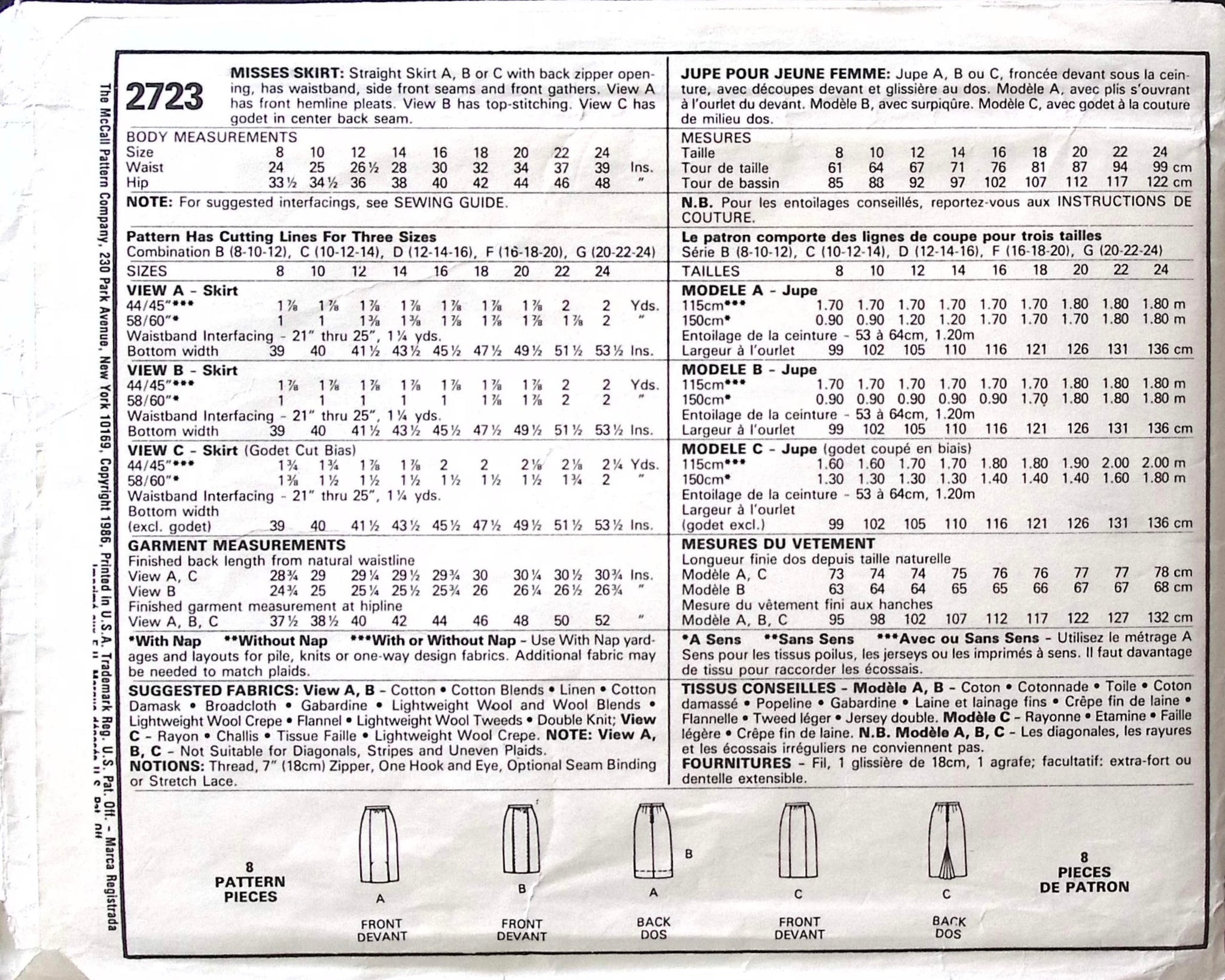 Misses’ Skirts: Woman’s Day Collection: This straight skirt features a back zipper opening for ease of wear, along with a waistband and side front seams for a flattering fit. Choose between front gathers for added fullness, front hemline pleats for a tailored look, or top-stitching for decorative detail. Additionally, the pattern includes an option for a godet in the center back seam, adding a unique and eye-catching element to the design. ©1986.