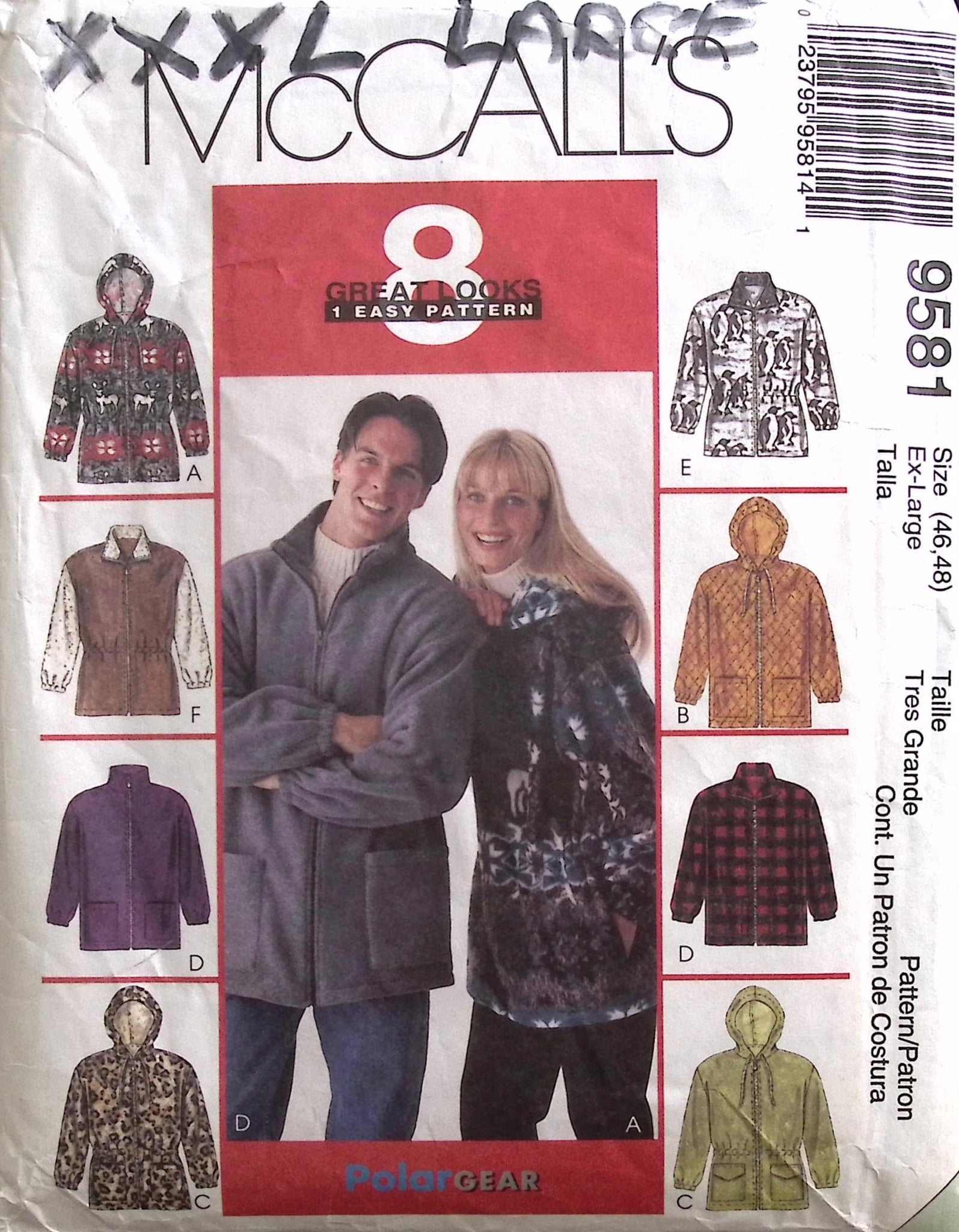 Unisex Jackets: This versatile unisex jacket pattern offers both practicality and style. With its zipper front closure, it ensures easy wearability. You can opt for either a traditional collar for a classic look or a drawstring hood for added protection against the elements. The encased drawstring at the waist allows for adjustable fit and added comfort. Whether you prefer the convenience of patch pockets or the streamlined look of side seam pockets, this pattern provides options to suit your needs and personal style. ©1998.