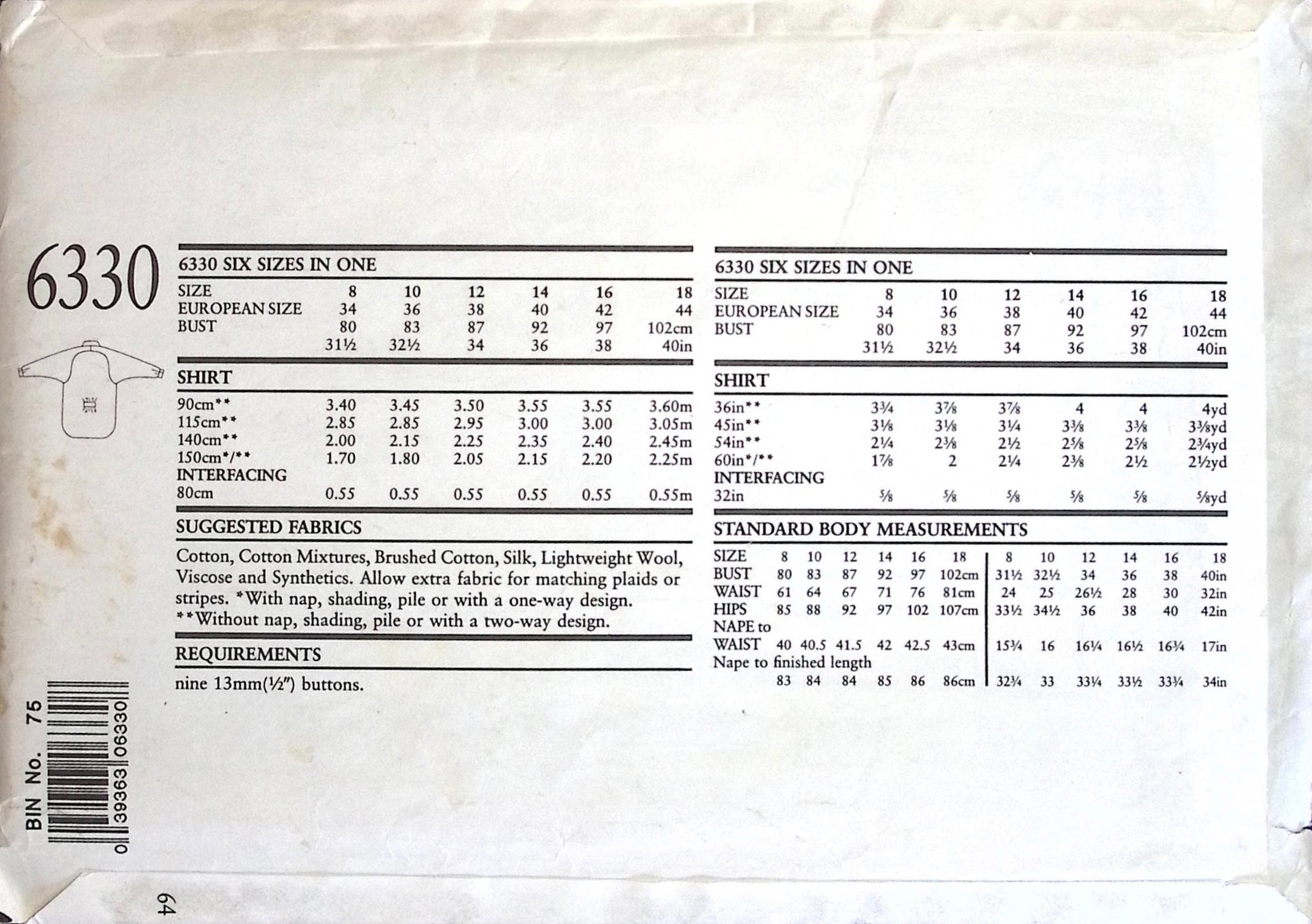 Misses’ Shirt: Whether you're channeling your inner retro diva or simply looking for a comfortable and trendy shirt, this pattern offers endless possibilities for creating a unique and fashionable garment that's sure to turn heads. ©1980's.