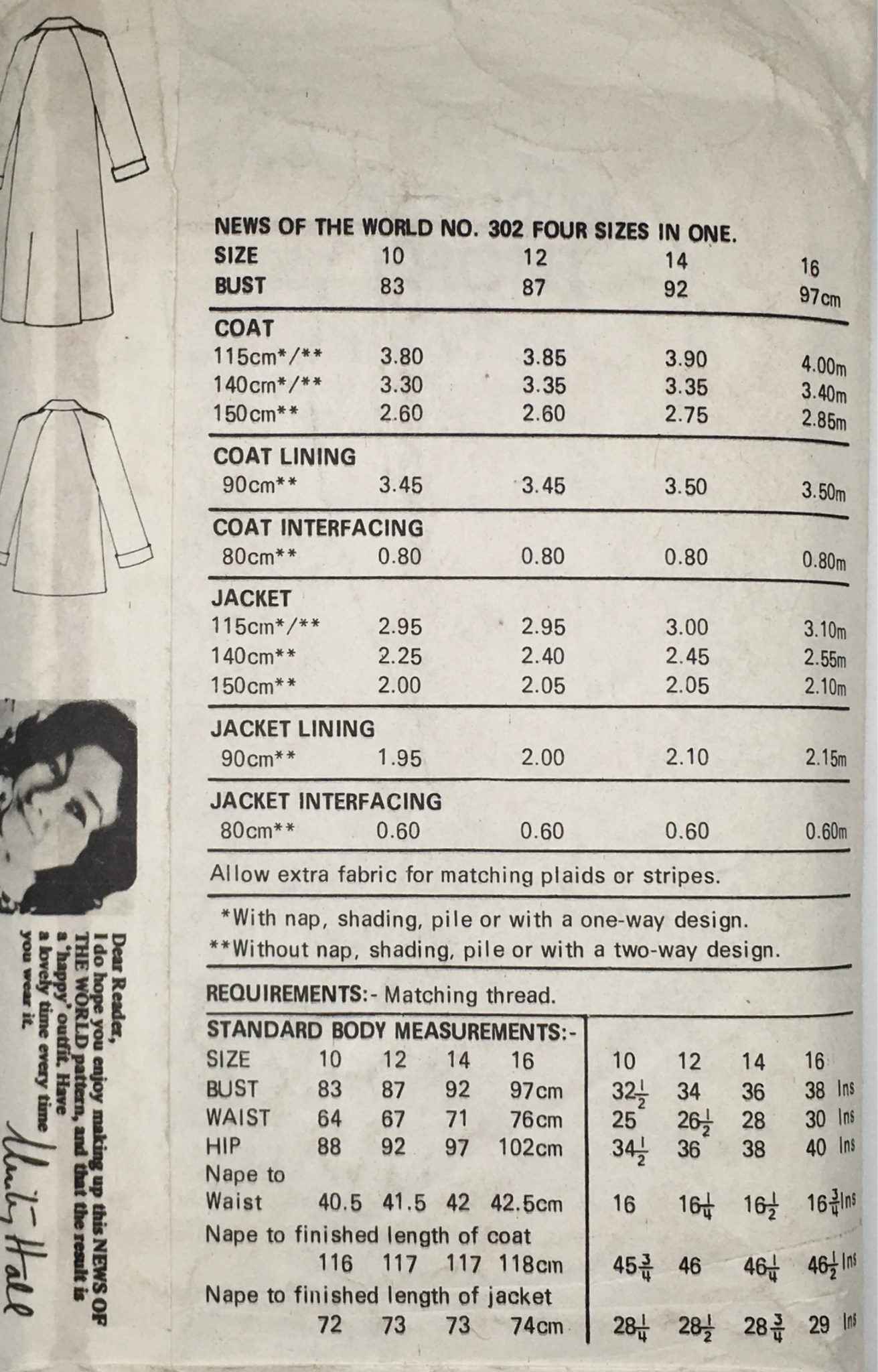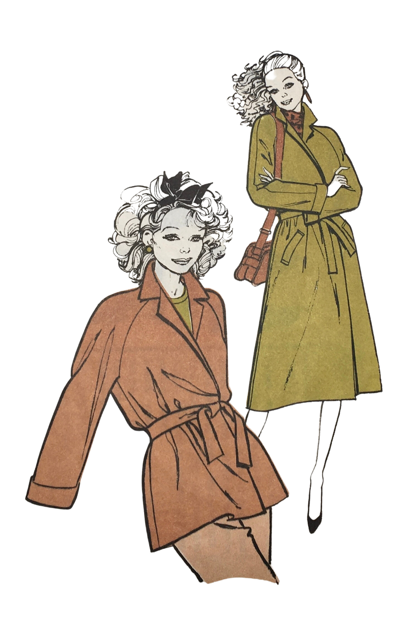 Misses' Jacket or Coat: This stylish design features a wrap-around silhouette, complete with a tie belt for a flattering fit. It's finished with a classic collar, long sleeves with turn-back cuffs, and a versatile look that's perfect for any season. Stay warm and chic with this versatile pattern. ©1980's.