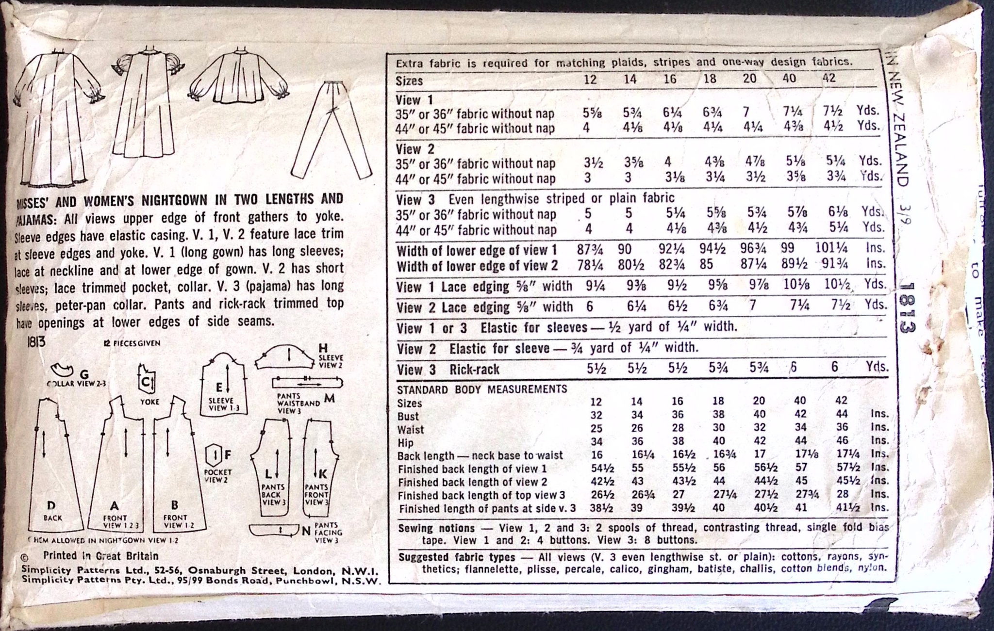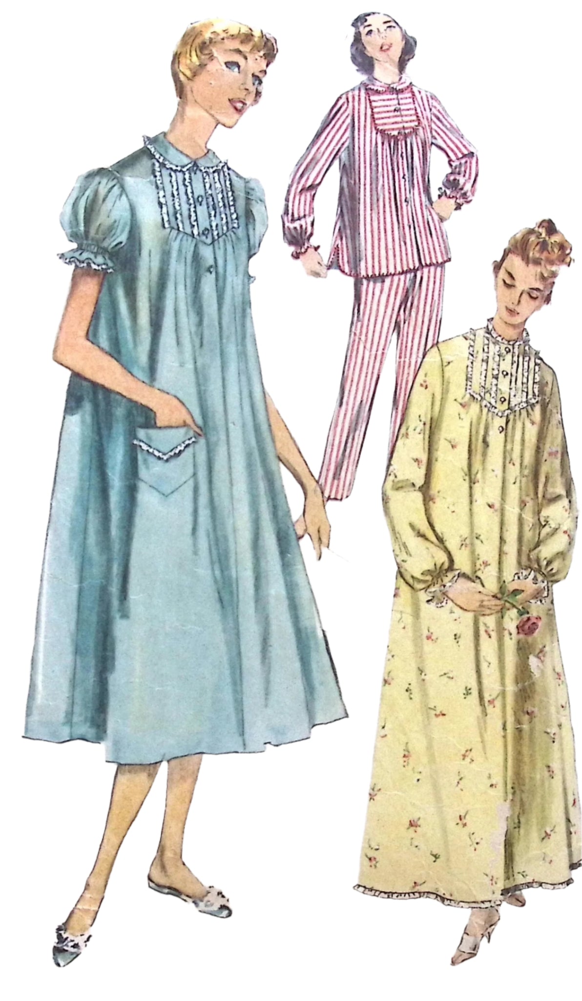 Misses' Nightgown & Pyjamas: Add some retro charm to your sleepwear with this vintage sewing pattern from Simplicity! Create a 50's style nightgown or pyjamas with gathered yoke and frilled sleeves in your choice of length. Get ready to sleep in style! ©1950's. RARE FIND!