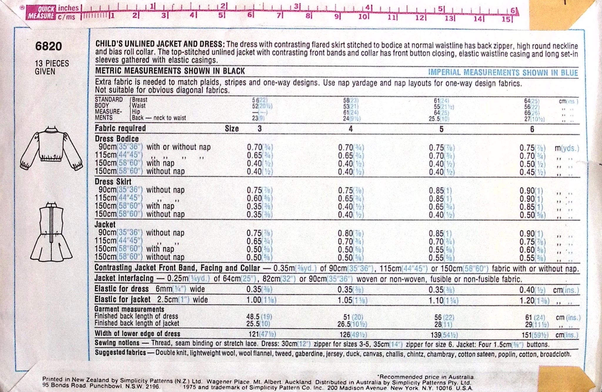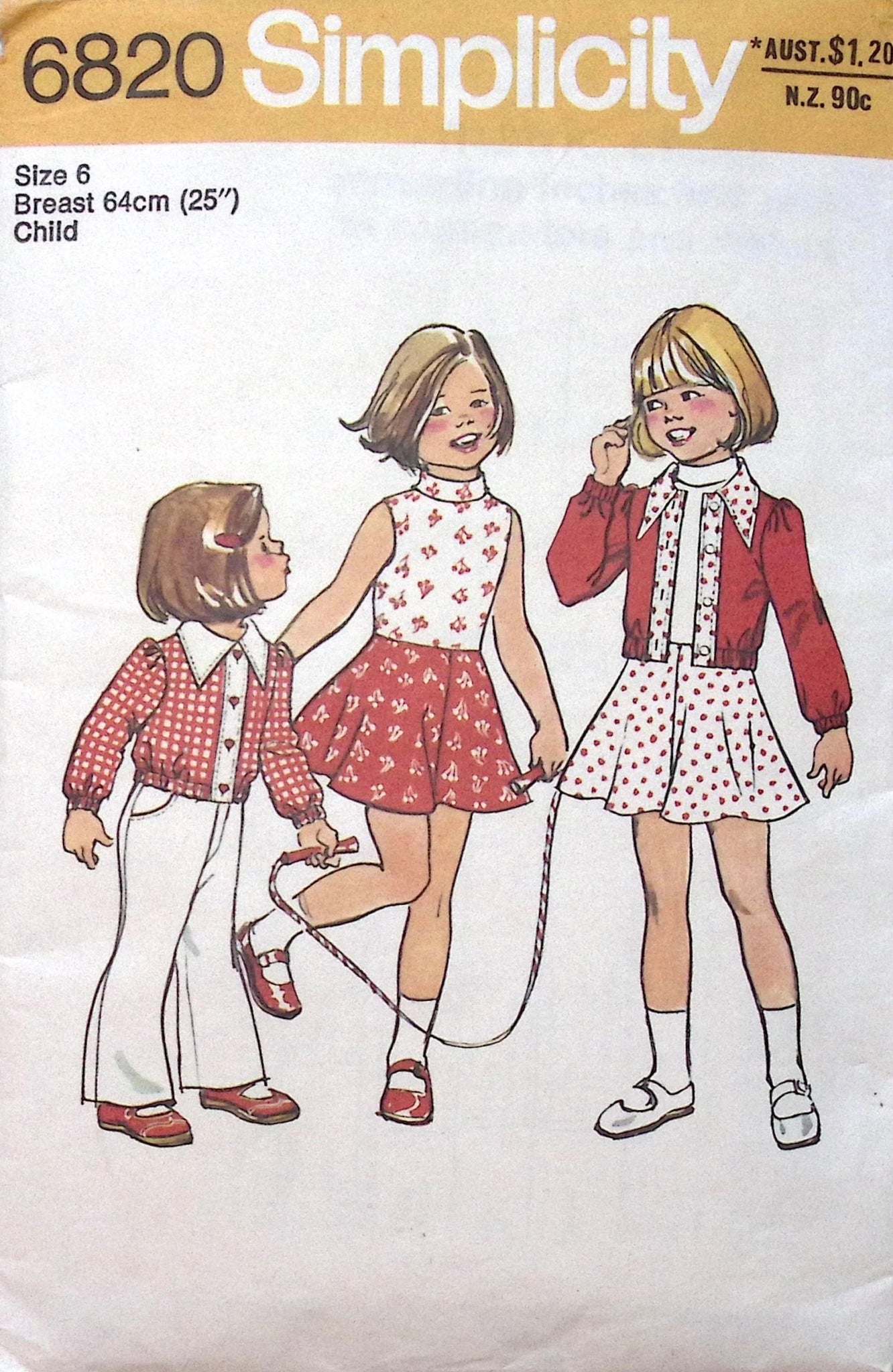 Child's Dress: Get ready to rock the retro look with this playful Simplicity 6820 vintage sewing pattern. The child's dress boasts a flared skirt and high neckline, sure to turn heads and transport you back in time. Sew it up and stand out! ©1975.