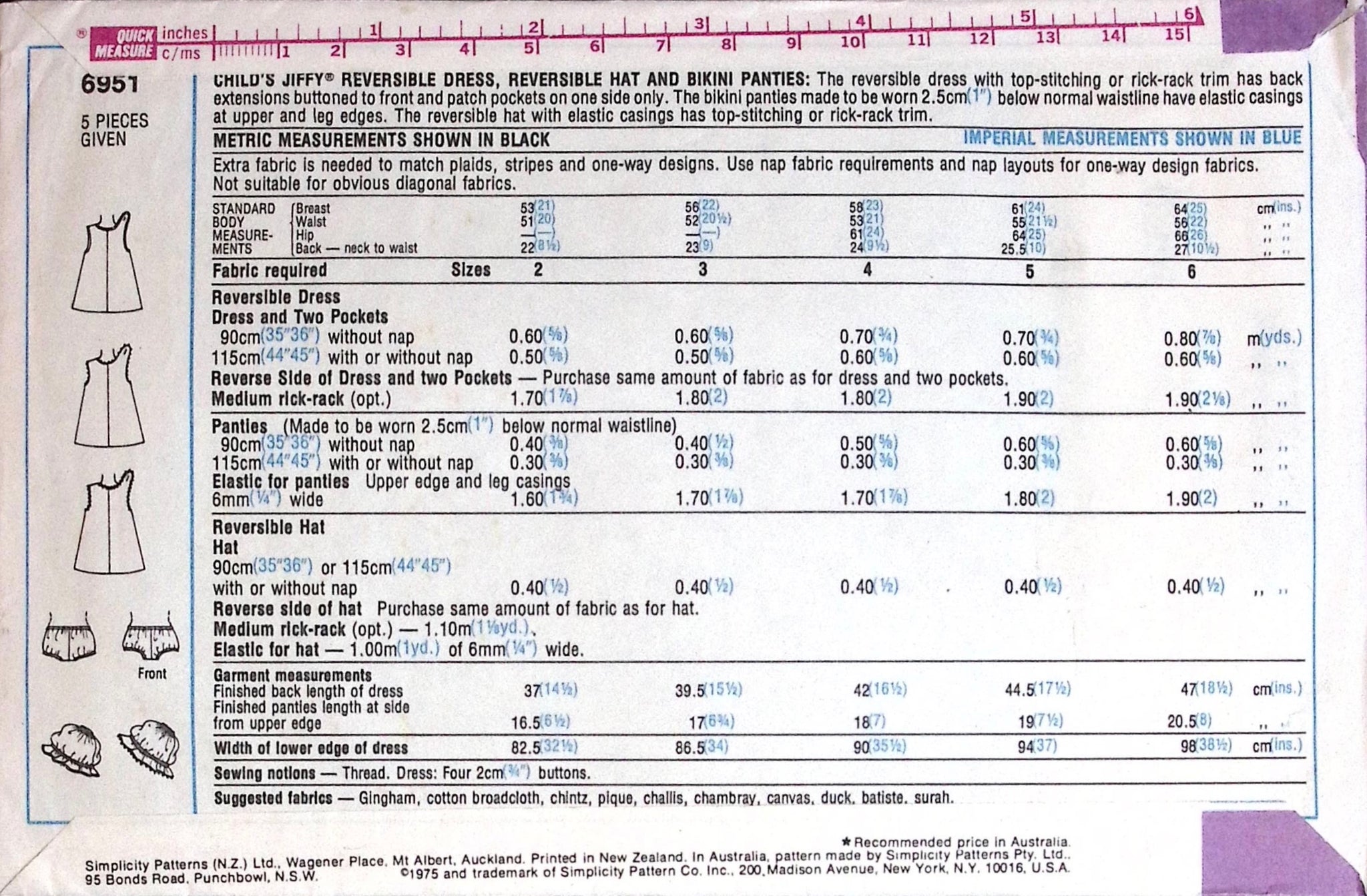 Child’s Reversible Dress, Hat & Bikini Panties: Create an adorable reversible sundress featuring a matching set of panties and a hat. With its charming design and versatility, this pattern offers a fun and stylish way to dress your little one for sunny days. ©1975.
